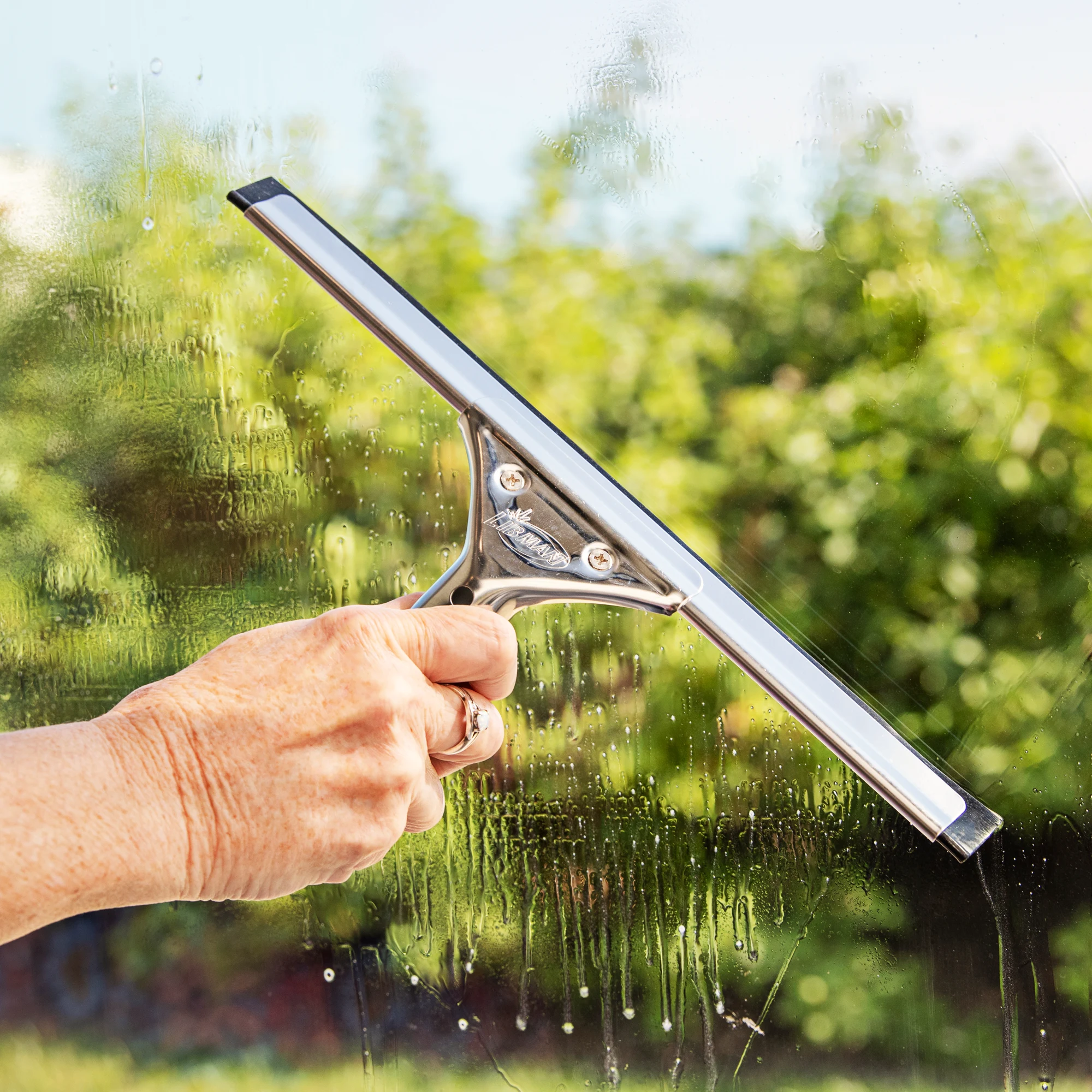 The 12” Stainless Steel Squeegee is a premium high-quality steel squeegee with real vulcanized, natural rubber for commercial and residential use. It is made with a recycled steel implement.