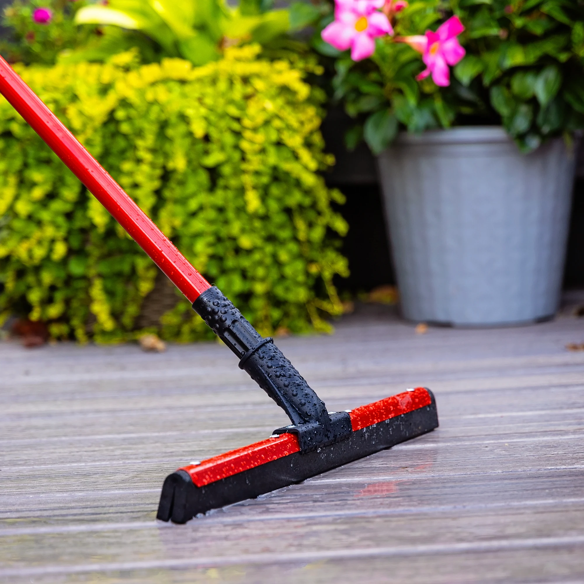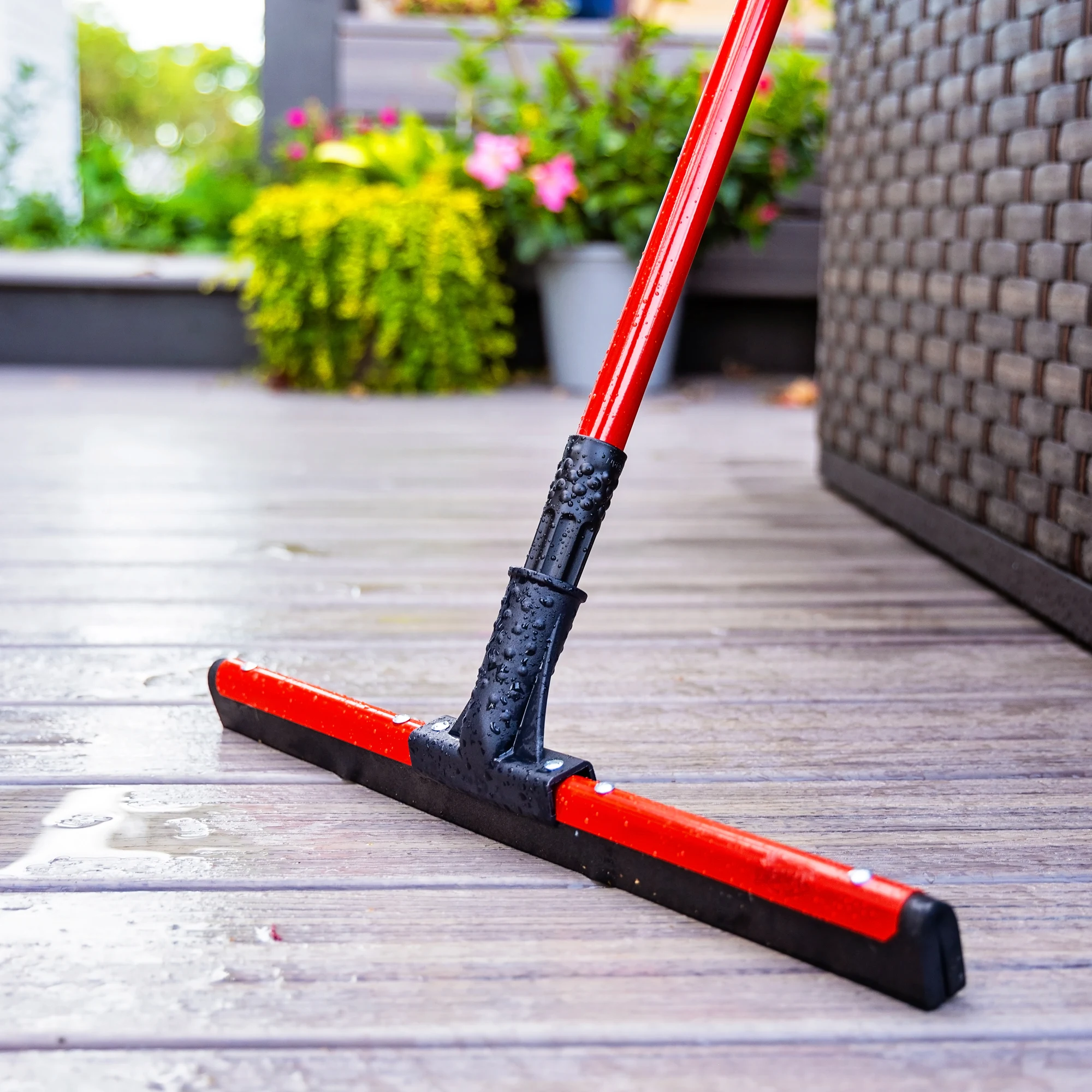- Flexible rubber blade mounted perfectly straight to remove water from the deepest cracks and rough surfaces, such as patios, walkways, and industrial sites