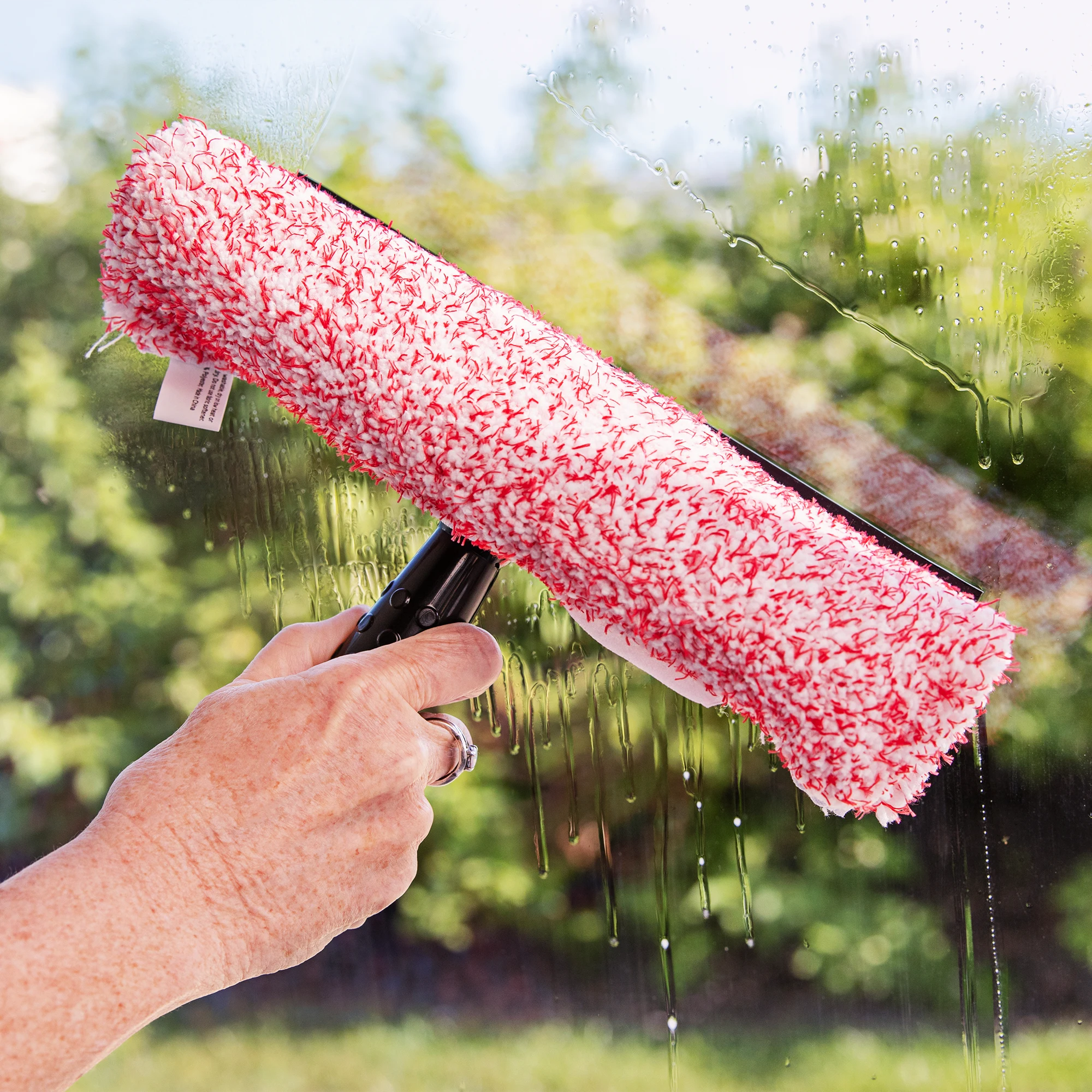 The 2-in-1 Window Washer is a microfiber cleaner with an attached rubber blade. It can be used wet or dry.