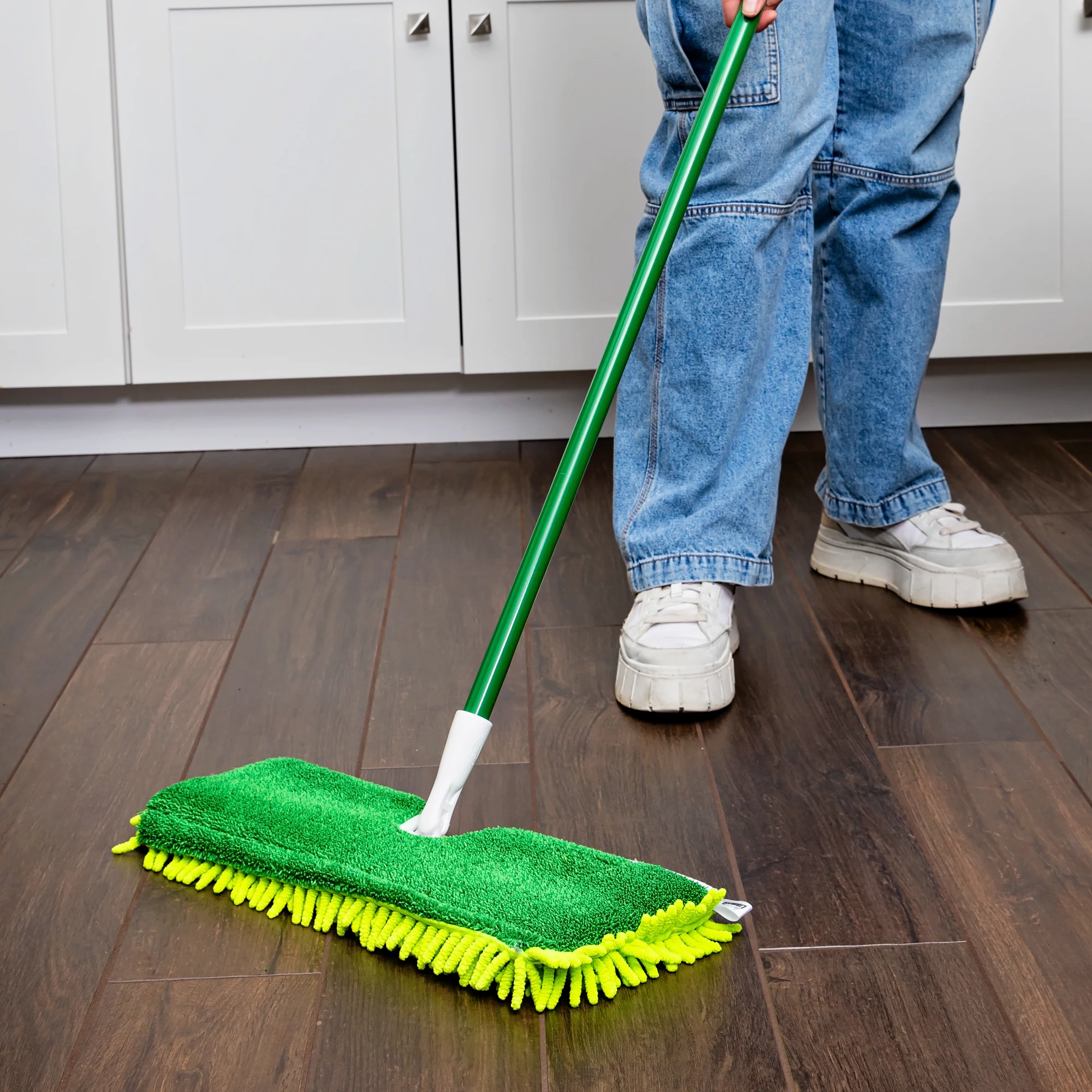 Whether you need to dust or mop, the 2-Sided Microfiber Mop will help you get the job done. When dusting your floors, use the microfiber finger side to pick up dust, dirt, and pet hair. The smooth side is perfect for mopping and washing dirt and grime away. The head itself is removable and machine-washable up to 100 times.