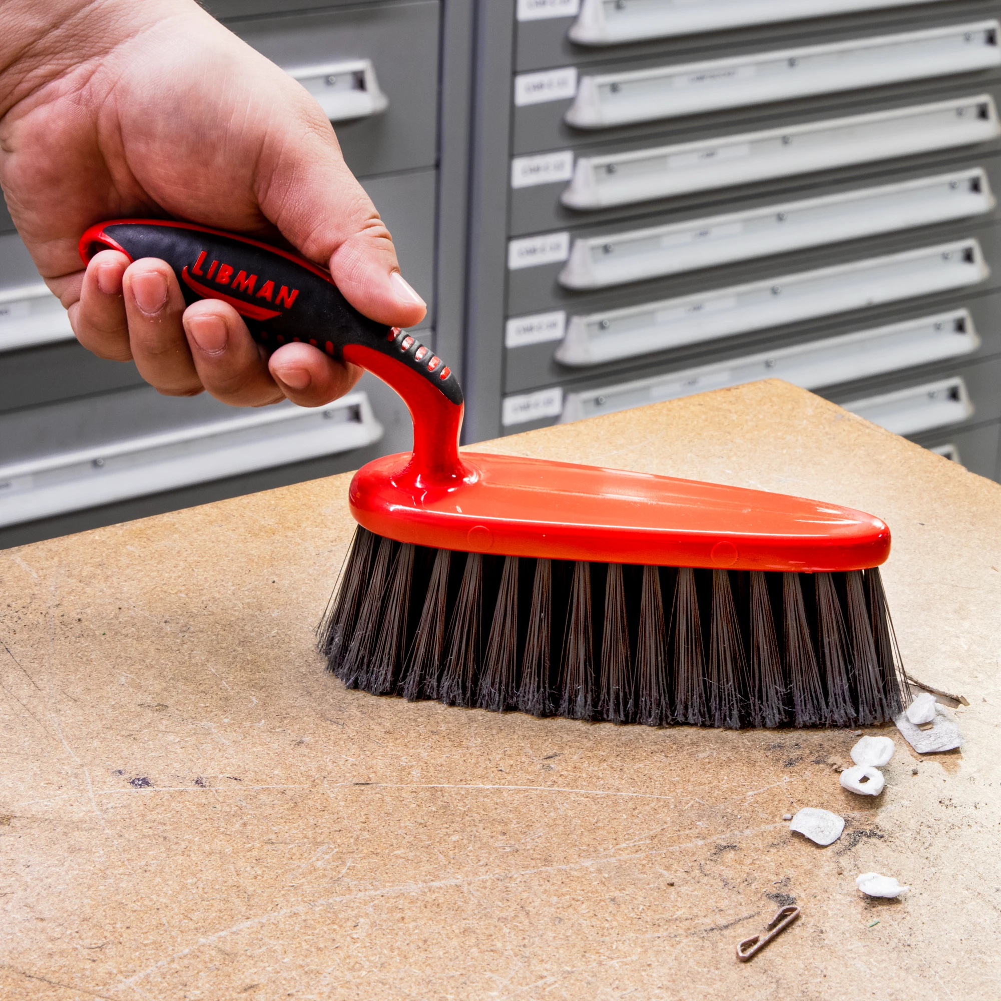 The Work Bench Dust Brush is a scrub and dust brush for all-purpose cleaning. It has extra-long bristles to dust off flat work surfaces.
