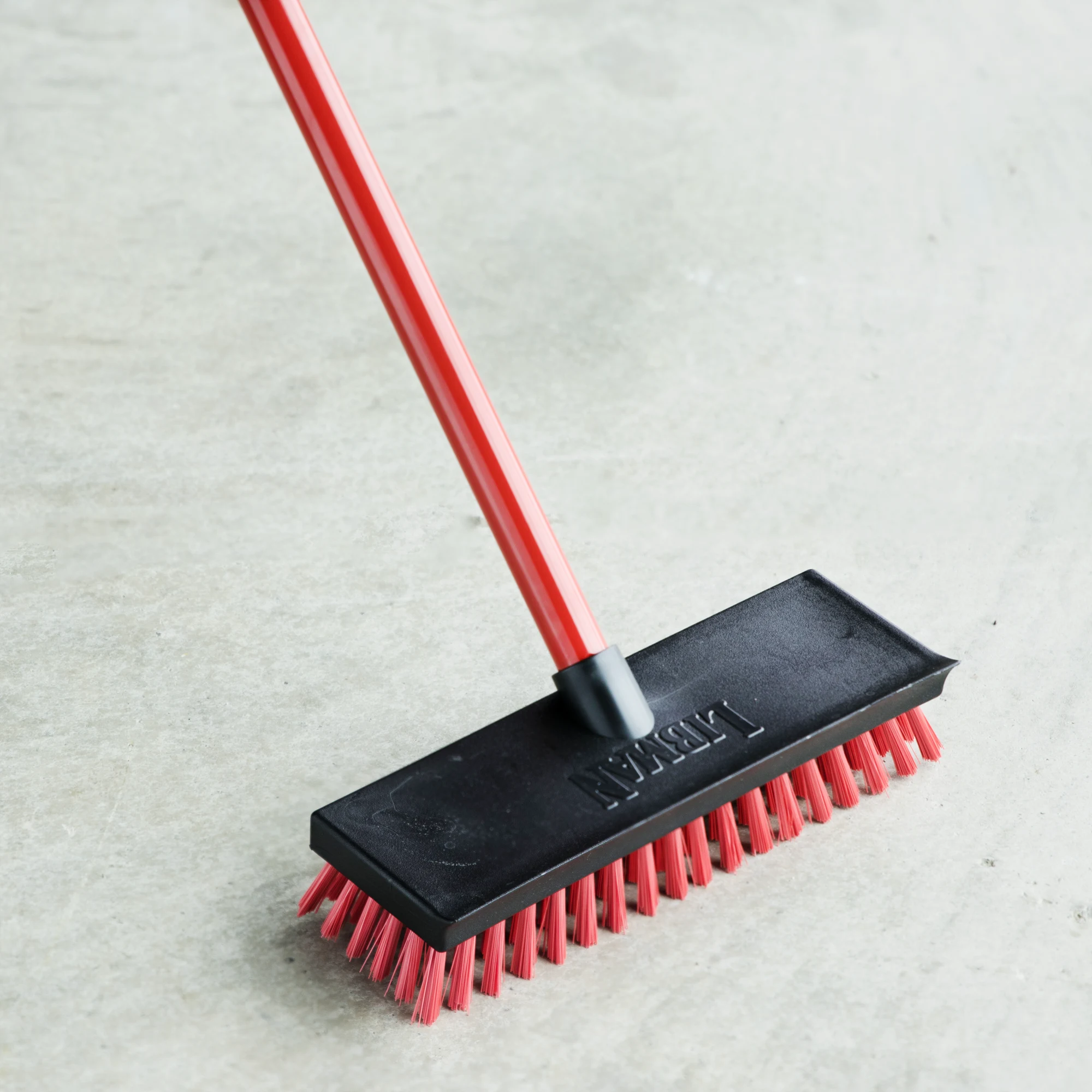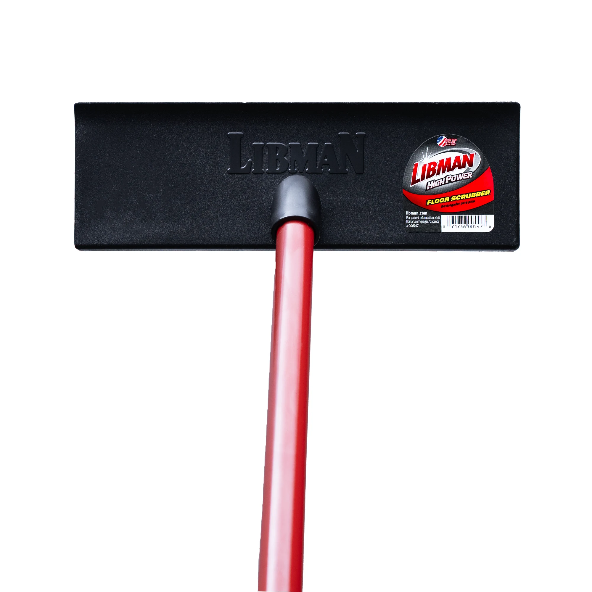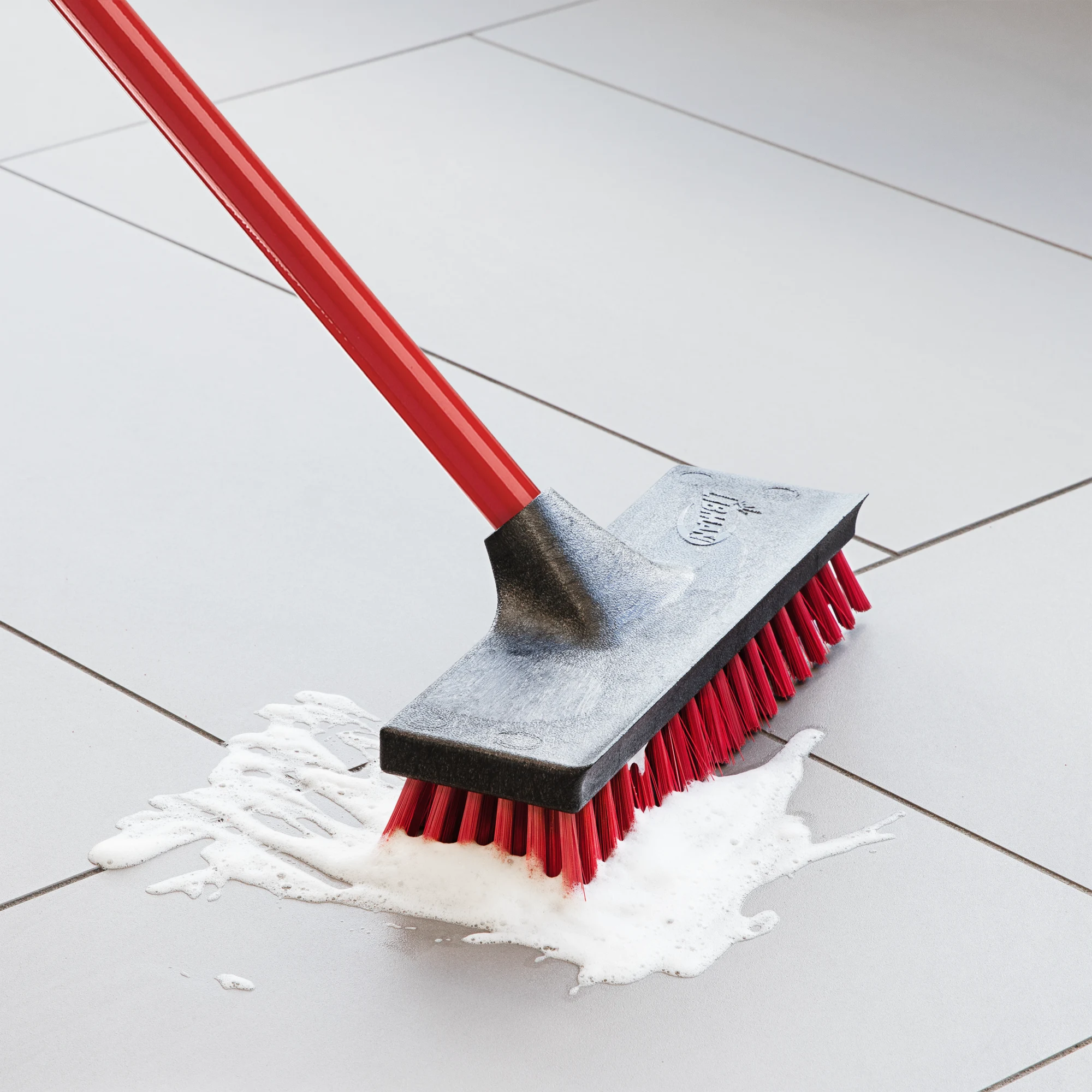 The Floor Scrubber is a heavy-duty, flat-surface floor scrubber for household and commercial applications. It includes a hanger hole for convenient storage.