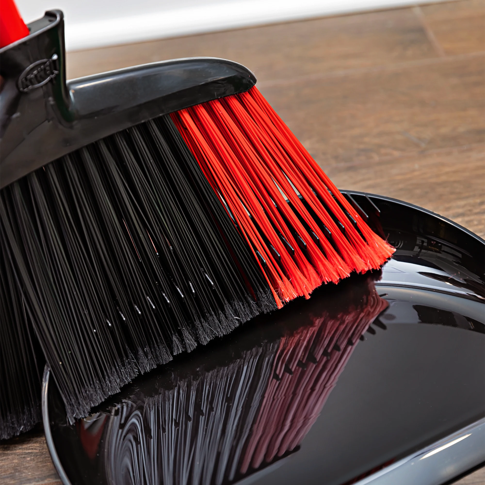 - Rigid plastic teeth in dustpan to easily remove dust and hair from broom fibers