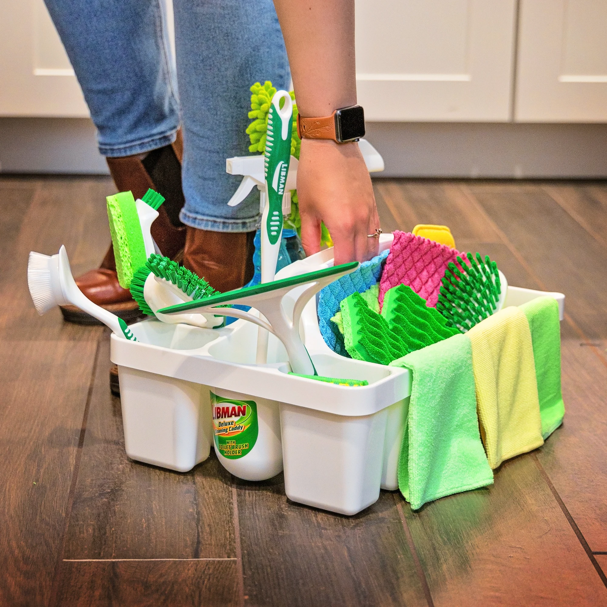 The Deluxe Cleaning Caddy features special compartments for a variety of cleaners and cleaning tools. It holds up to six 36 oz. bottles.