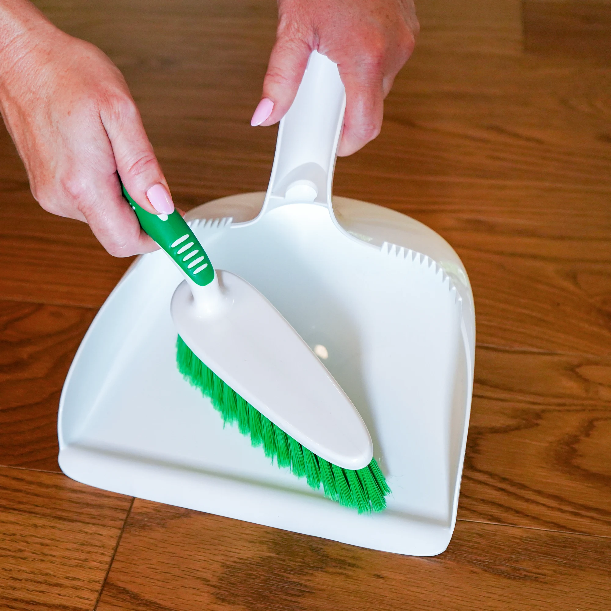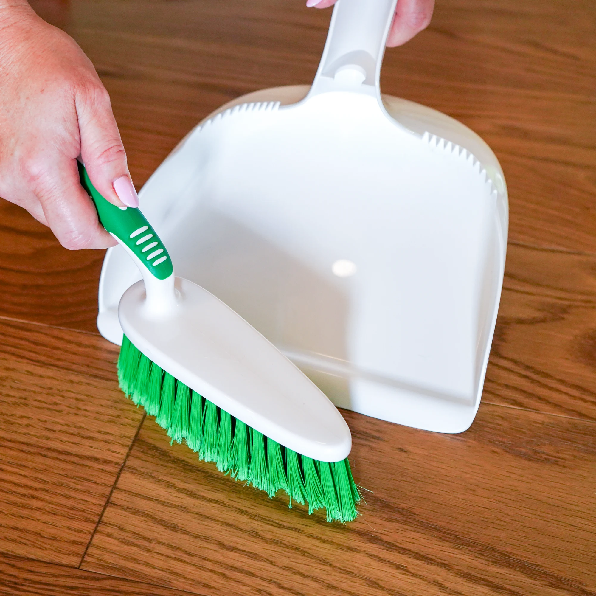 This set is excellent for quick clean-ups in the kitchen, bathroom, car, and more. The dustpan contains a comb for hands-free brush cleaning—simply run the brush over the comb to remove all debris stuck in the brush's fibers. The grip is ergonomic with a hanger hole.