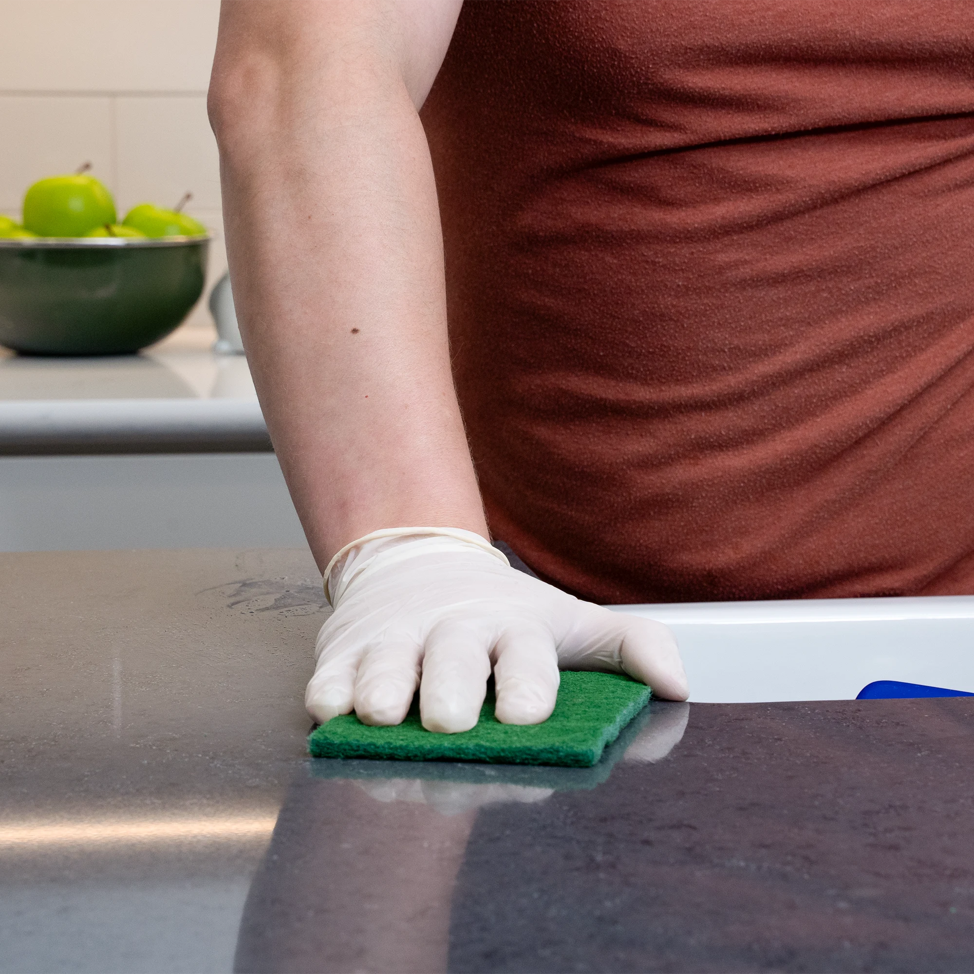 The Heavy Duty Scouring Pads include crimped and heat-set synthetic fibers with a large scrubbing surface for all household areas. The pad’s tightly-knitted design is great for tough messes.