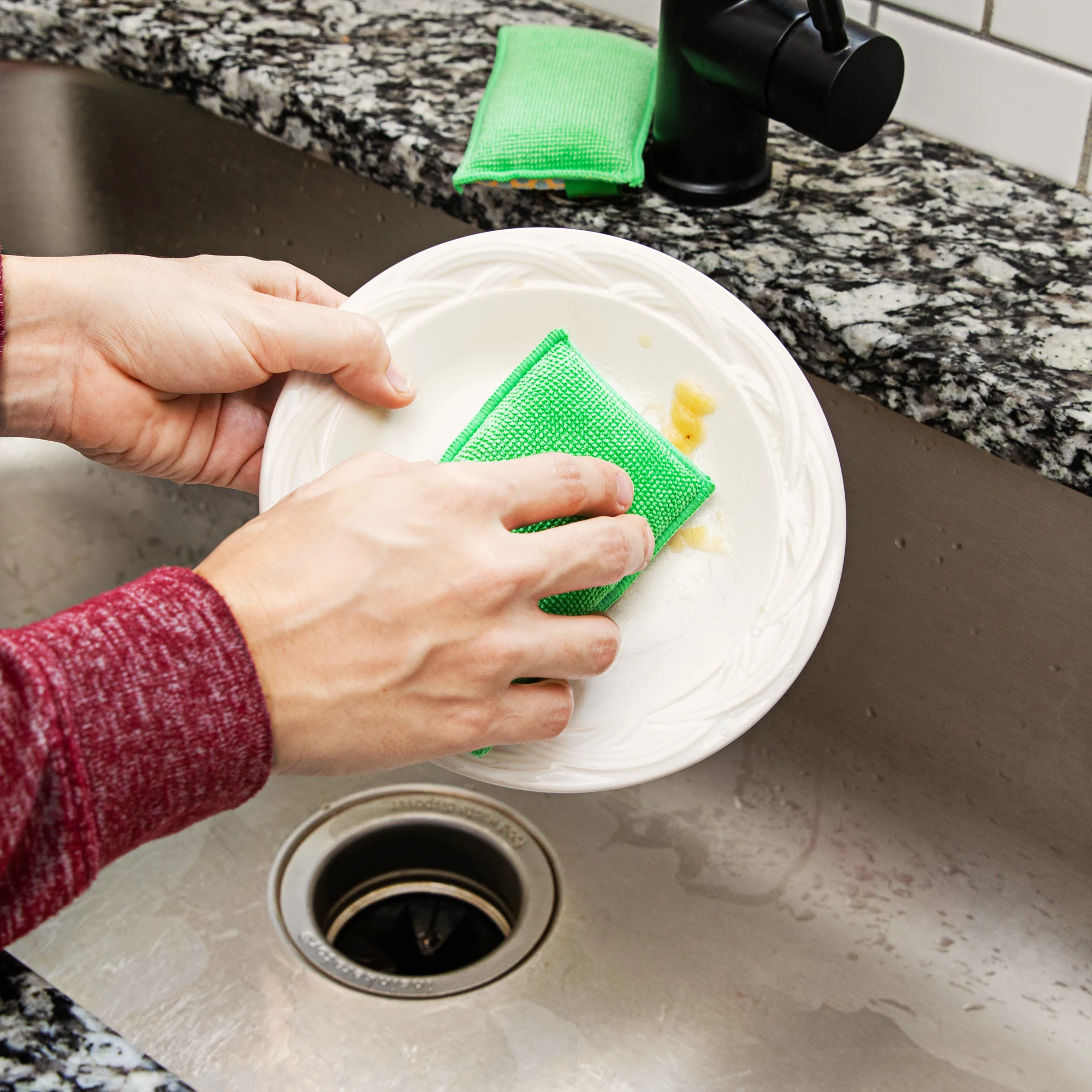 Make cleaning your dishes even easier with the Power Scrub Dots Kitchen & Bath Sponge. The 2-in-1 design removes tough, stuck-on food with powerful scrubbing dots without scratching delicate surfaces, while the microfiber side wipes surfaces clean. Best of all, it rinses clean, removing stuck-on food particles.