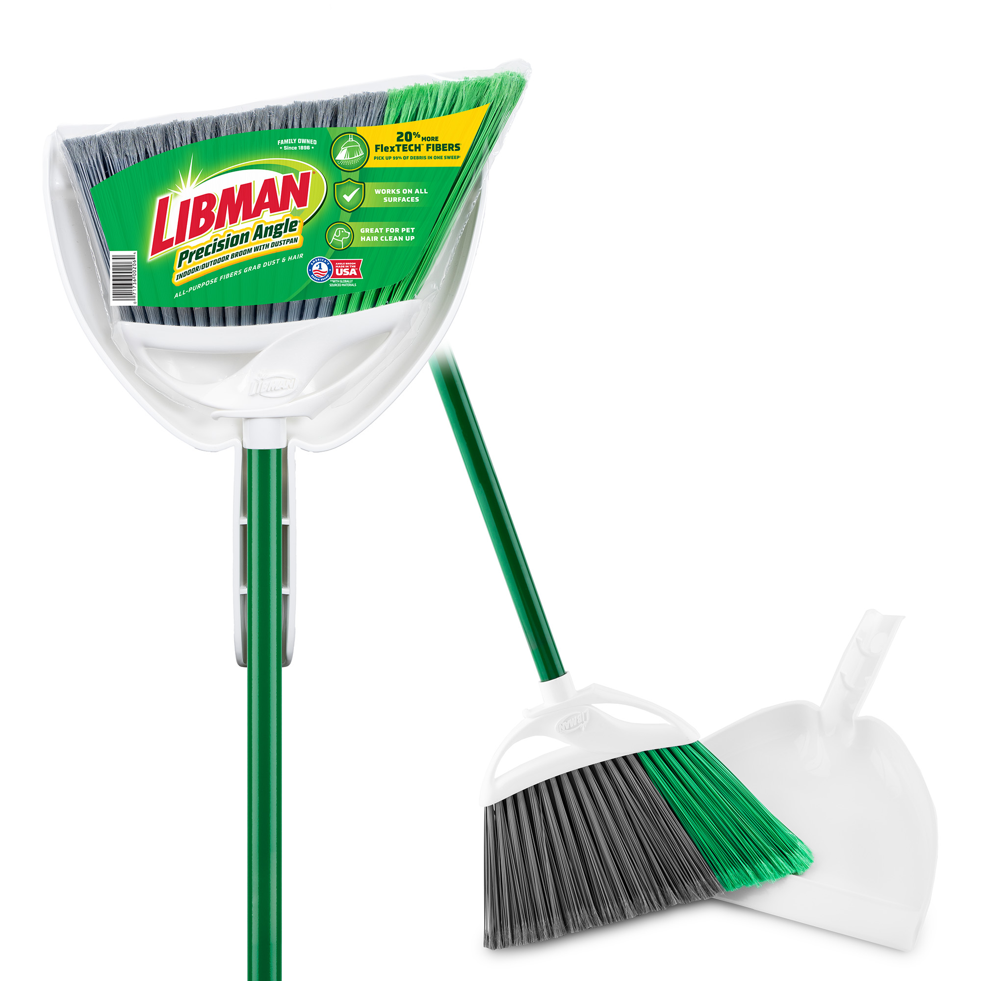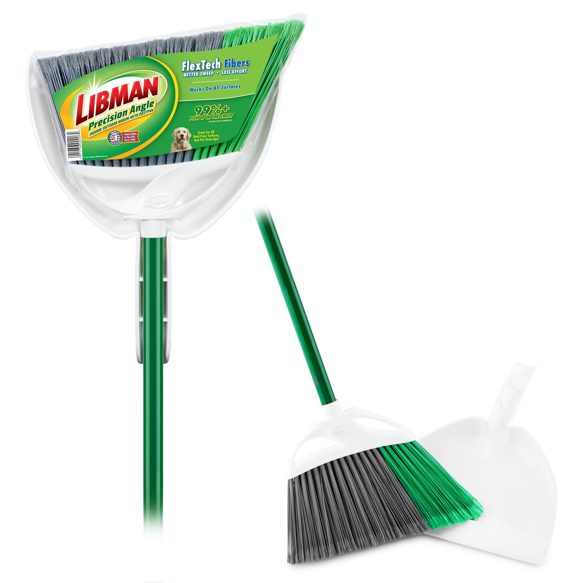 The Precision Angle® Indoor/Outdoor Broom With Dustpan helps make clean-up a snap. Featuring 5” long fibers made from recycled PET bottles, these fibers are precisely cut to remove 99% of dust, dirt, and hairs in one sweep. The dustpan features a molded lip to seal against your floor to ensure the dirt winds up in the dustpan and not under it. Best of all, the guaranteed quality construction of the Precision Angle® Indoor/Outdoor Broom With Dustpan makes the set the ideal one-two punch for sweeping up inside or out.