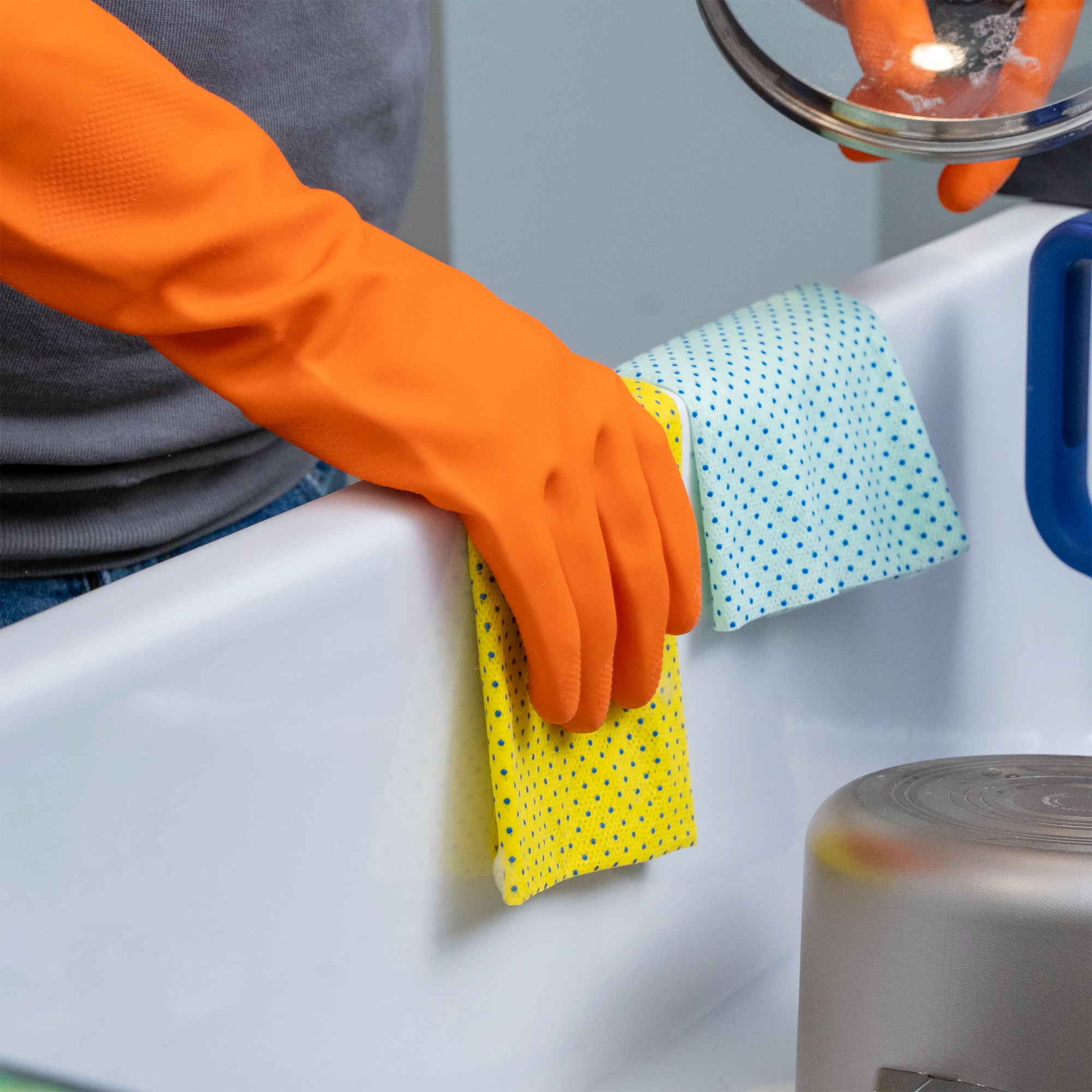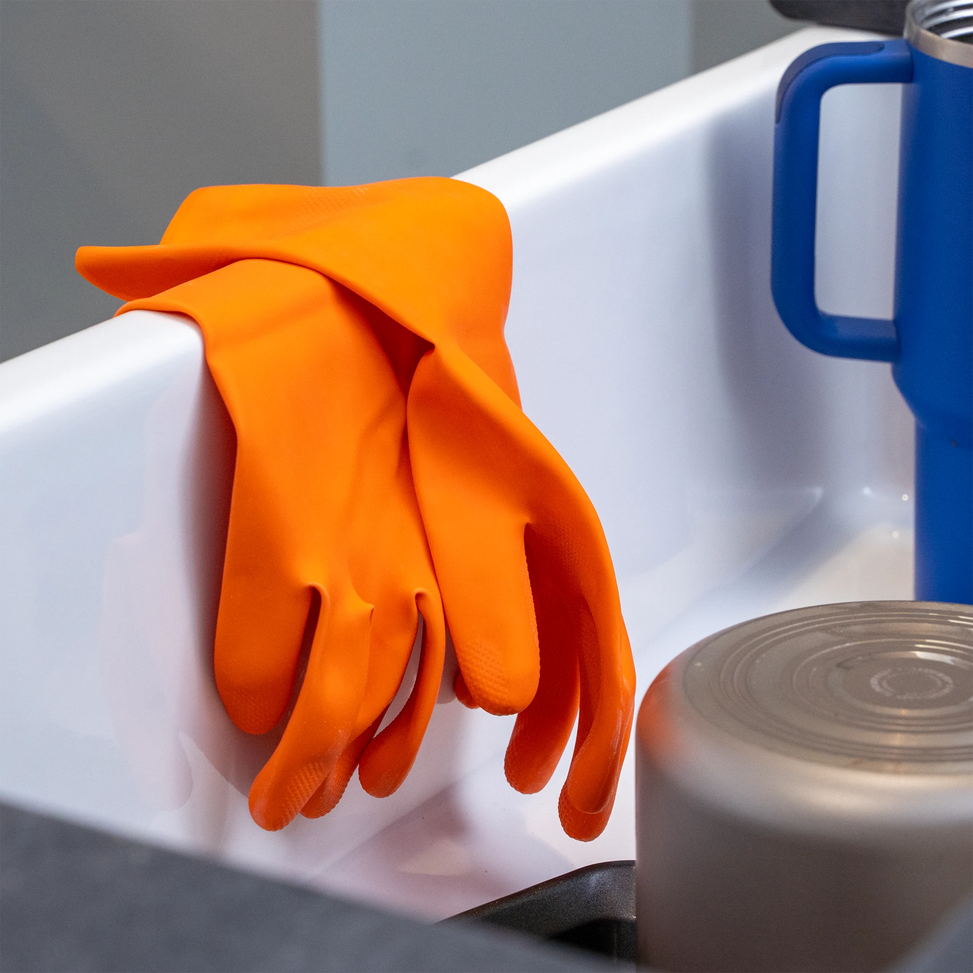 Textured for increased grip in wet and dry conditions, the Premium Reusable Latex Gloves stand up against harsh elements. They feature improved abrasion resistance and greater durability thanks to being 50% thicker than standard lined and flocked gloves. Speaking of the flocking, the absorbent cotton flock lining wicks away perspiration, while extra-long sleeves can be turned up to provide a drip-catching cuff, helping you stay dryer and maintain dexterity and control.