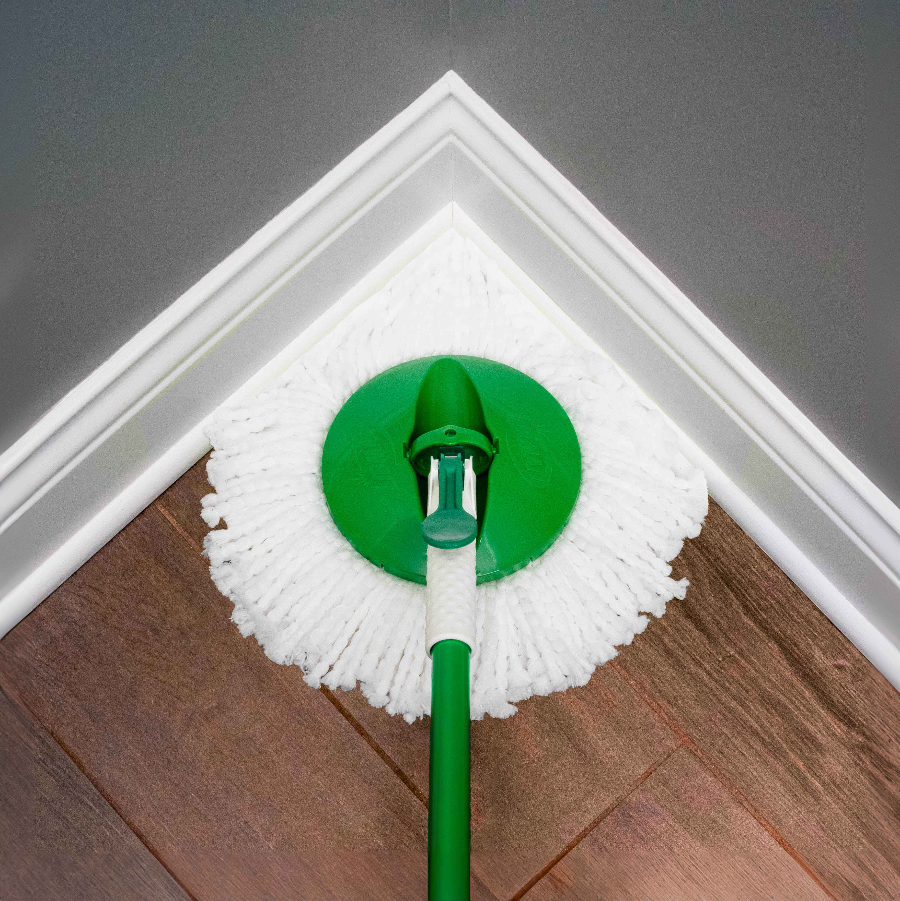 The Tornado Spin Mop® System is a convenient all-in-one mopping system. It was designed with a large microfiber, machine-washable mop head that absorbs and removes more water so your floors dry quickly. The heavy-duty bucket and spinning chamber work to remove water and dirt efficiently from the mop head. The lower handle is precision-molded and impact-resistant. You can unlock and push the handle down once for a damp mop or more times for a drier mop.