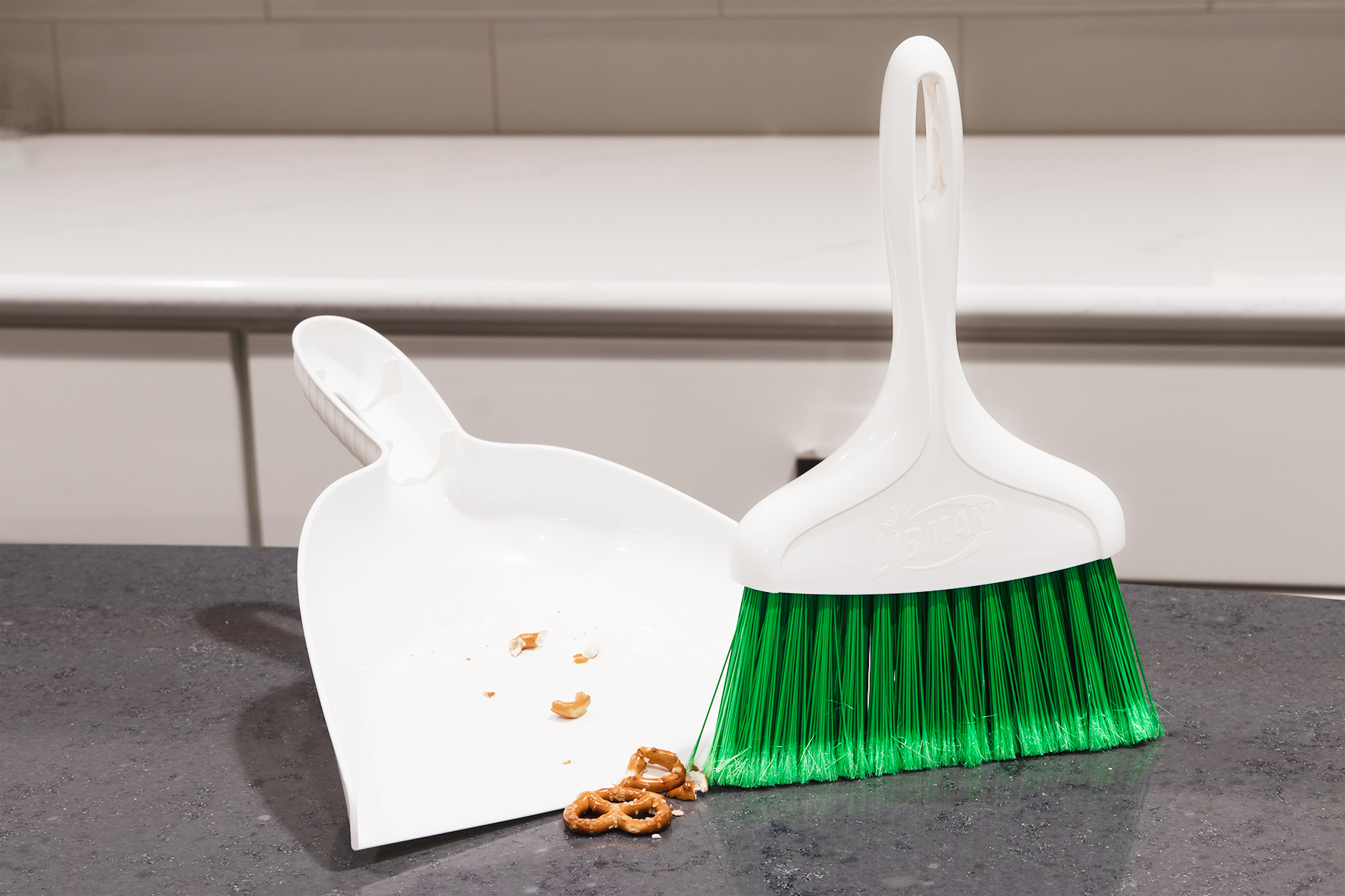- Whisk broom and duster snap into the handle of the dustpan for easy storage