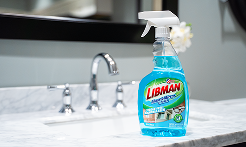 - Mirror: Use our Glass and Mirror Cleaner with a microfiber towel to eliminate watermarks on your bathroom mirror.