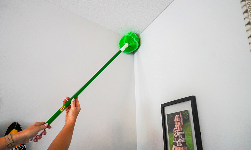 “With its high ceilings, my home can be challenging to keep dust-free, but this product has been a lifesaver for removing spider webs and dust bunnies from ceiling corners and hard-to-reach spaces. The extendable handle makes it effortless to reach high areas, while the fibers effectively trap spider webs, preventing them from floating away. It’s also incredibly versatile and works great for cleaning ceiling fans.”