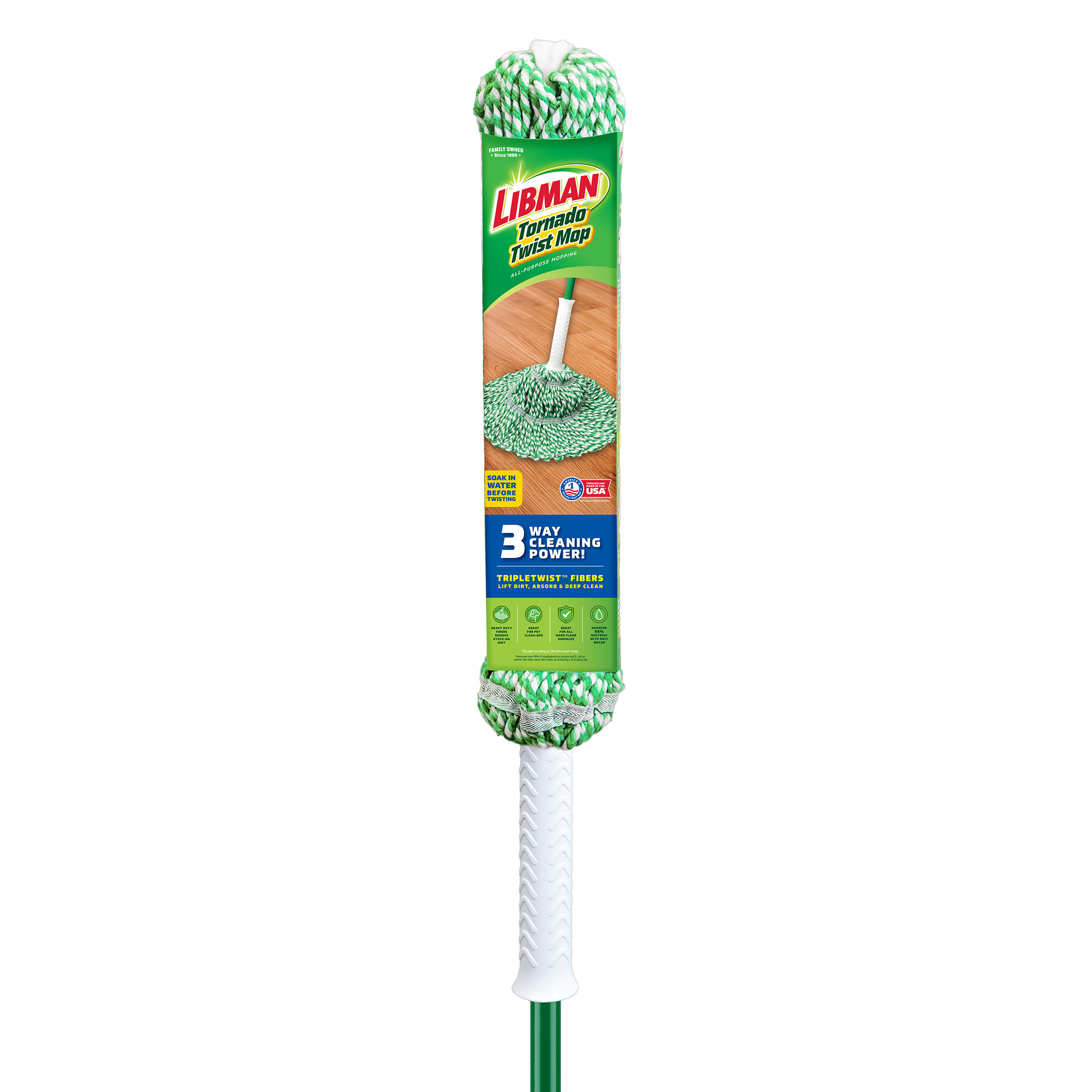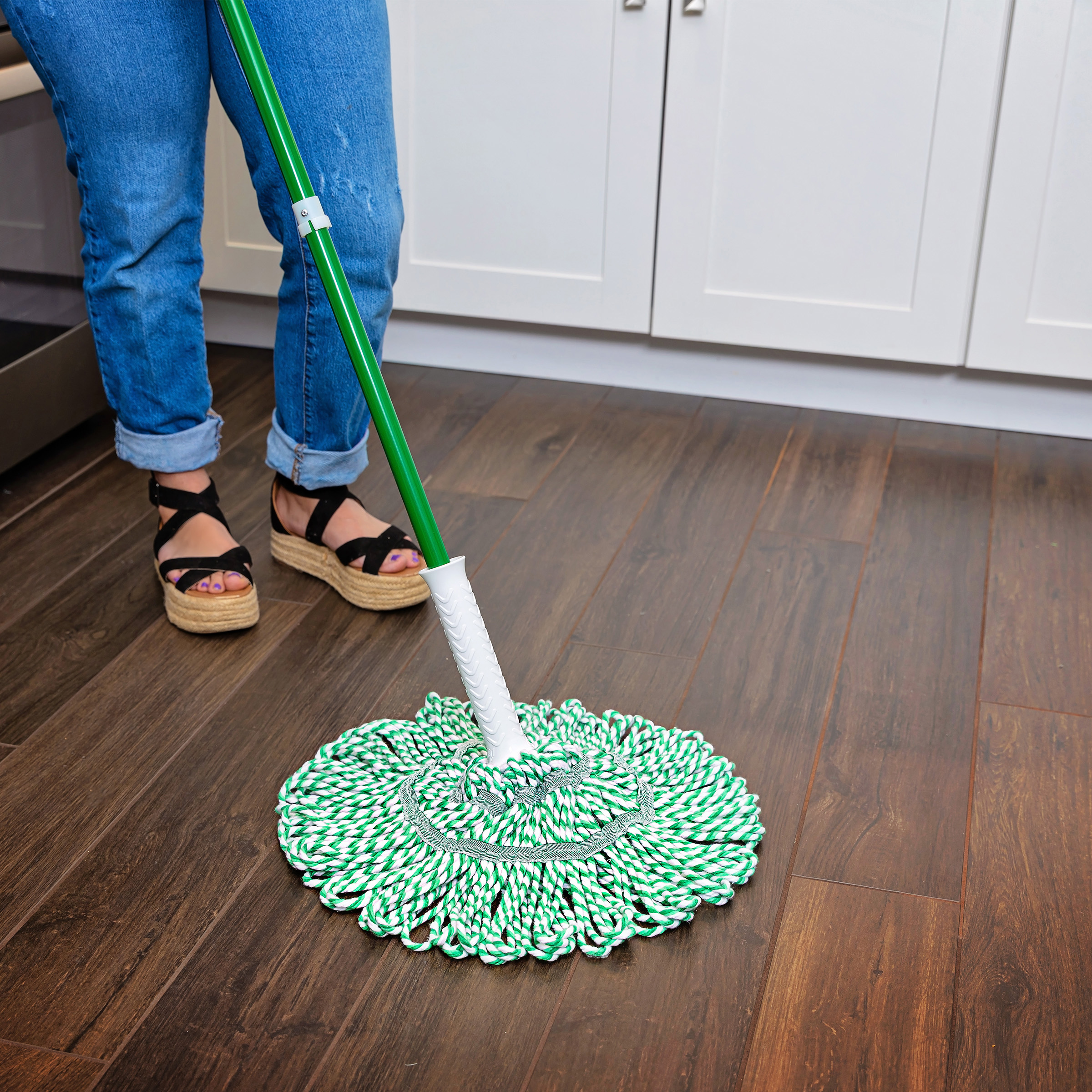 The Tornado Twist Mop™ is one of America’s top-selling mops, and there are many reasons why. Its large mop head enables you to clean more in less time. Wringing water out of the mop head is easy, thanks to its integrated Grip N’ Click ratchet wringer. Simply click the handle into place, then twist it to wring out dirty water!