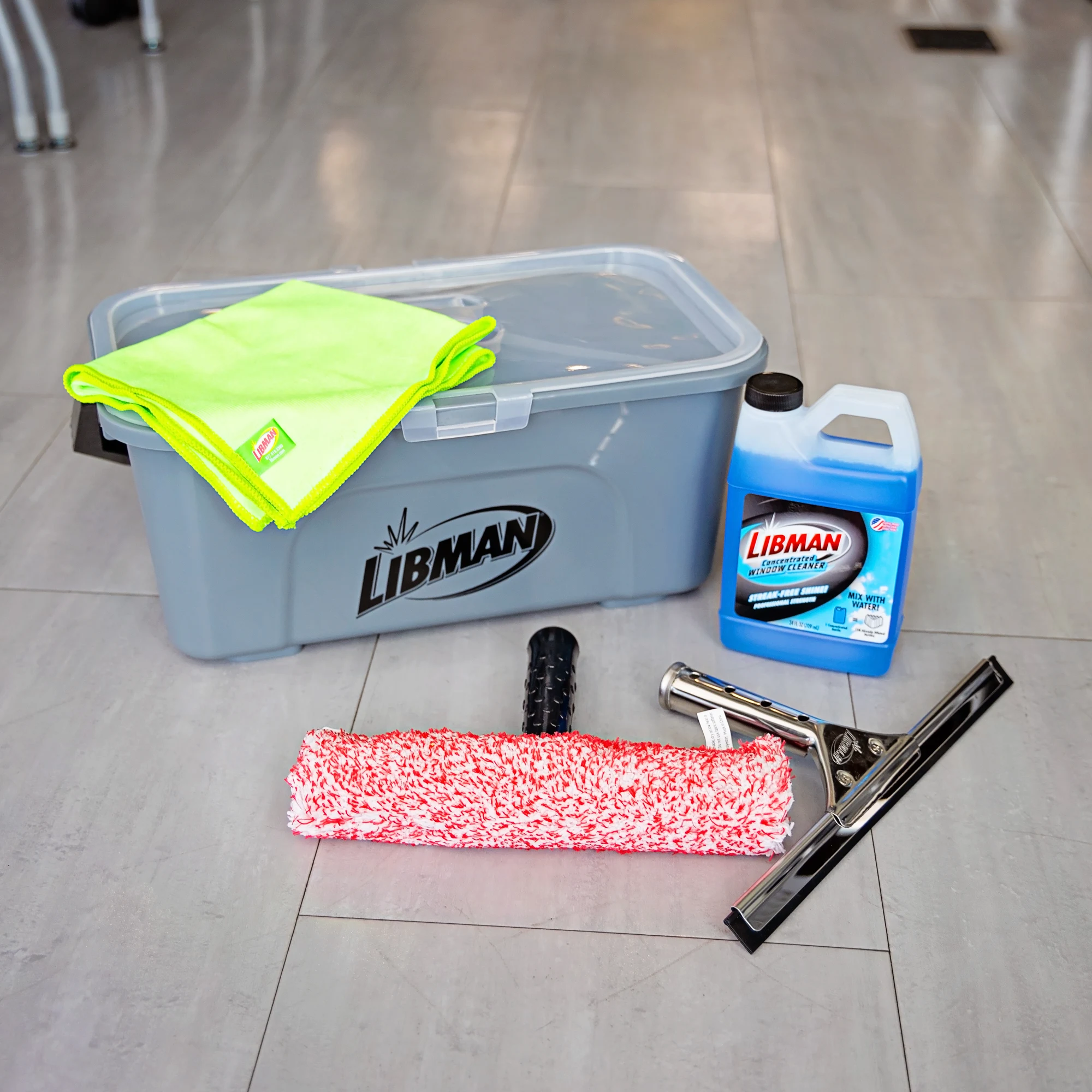 The Window Cleaning All-in-One Kit is a total solution kit for window cleaning. It includes the Concentrated Window Cleaner, 12” Stainless Steel Squeegee, Microfiber Washer, and Window Cloth.