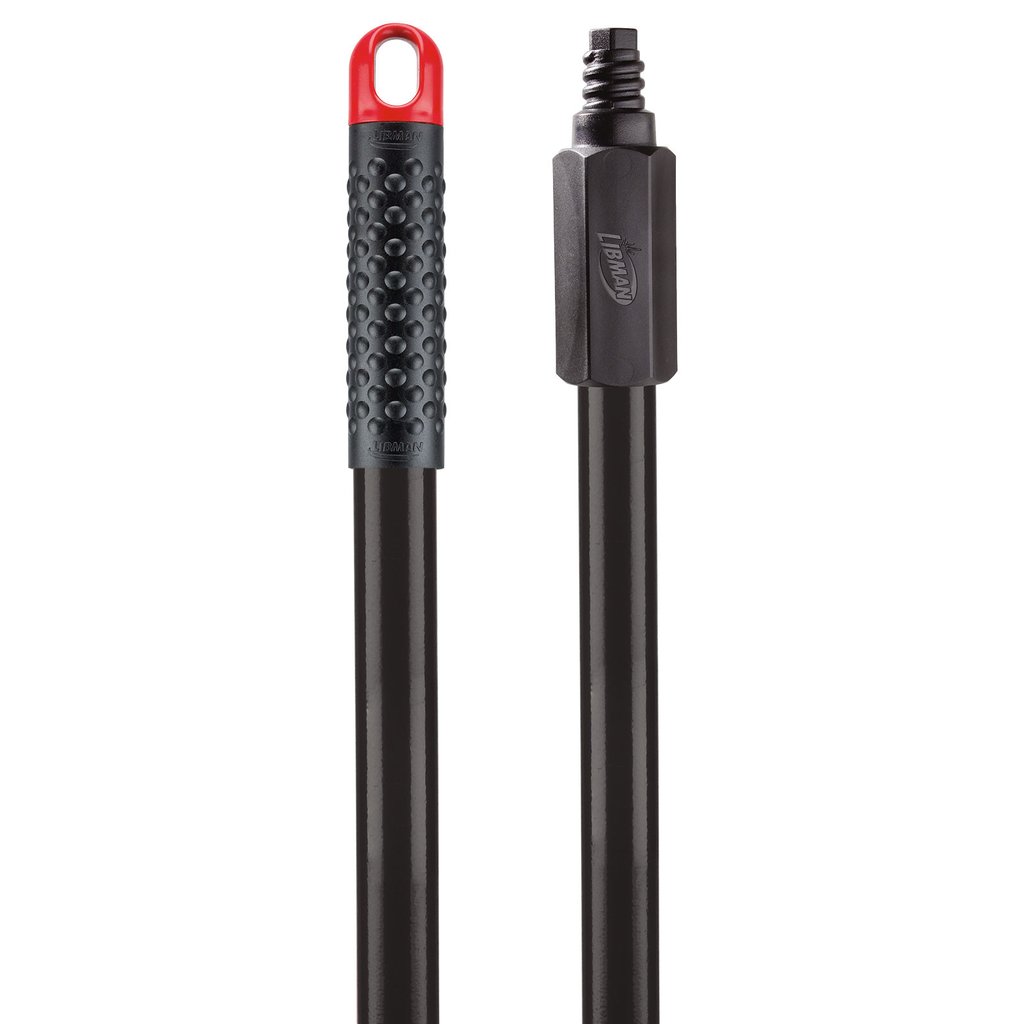 The 60” Steel Handle is a black steel handle that fits tapered ends, push brooms, floor squeegees, and more. It is 1” thick and has a durable nylon thread and extra-long hex.