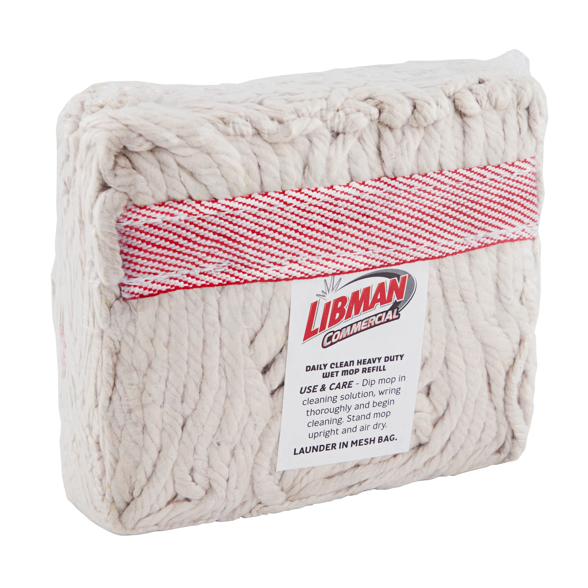 Break-in by soaking overnight. Ideal for general floor cleaning. Cotton provides excellent absorbency. Long fibers provide maximum efficiency to shorten cleaning time. Considered the highest quality, best value style. Has up to 8 times longer life and does a much better job in shorter time, reducing labor by as much as 50%.