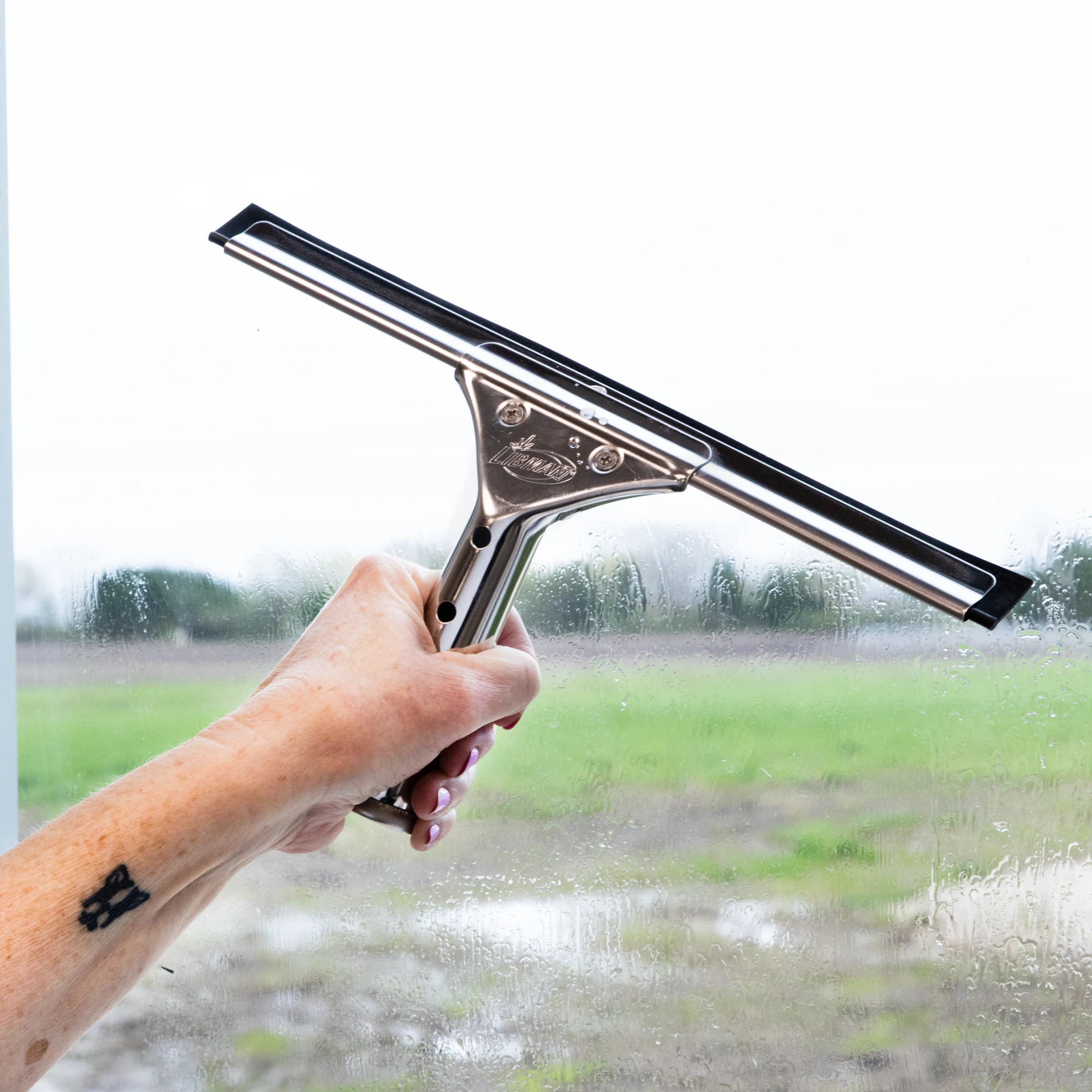 The 12” Stainless Steel Squeegee is a premium high-quality steel squeegee with real vulcanized, natural rubber for commercial and residential use. It is made with a recycled steel implement.