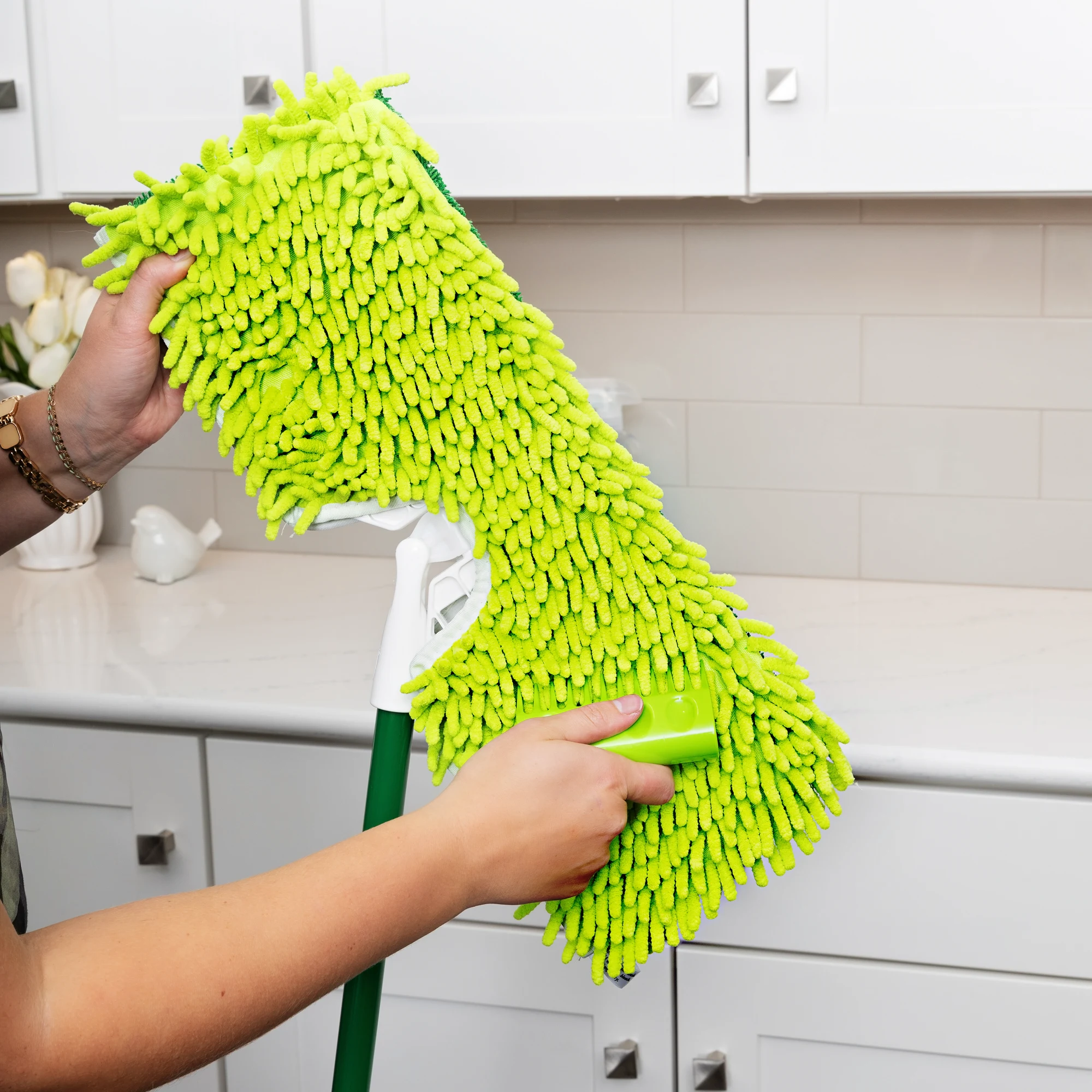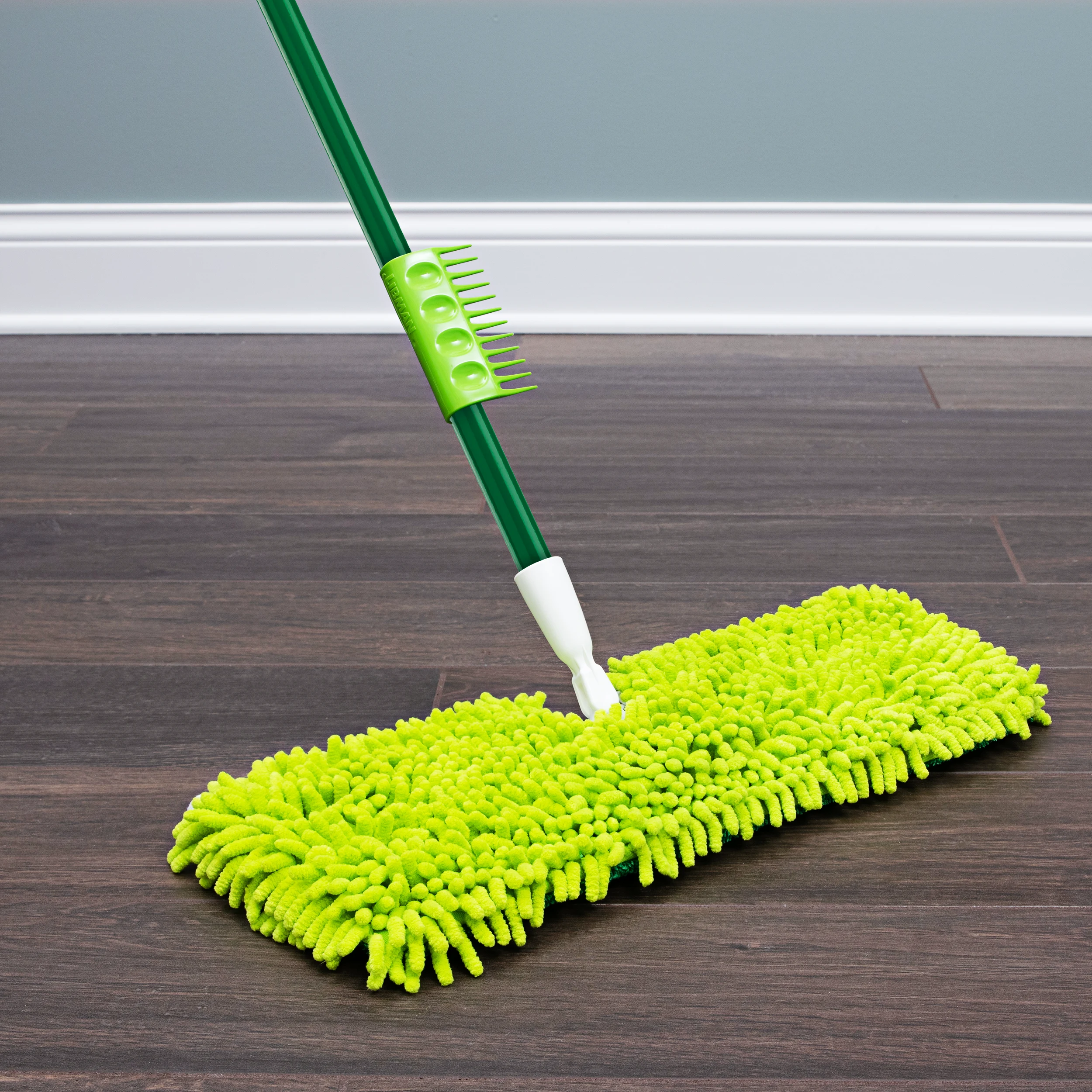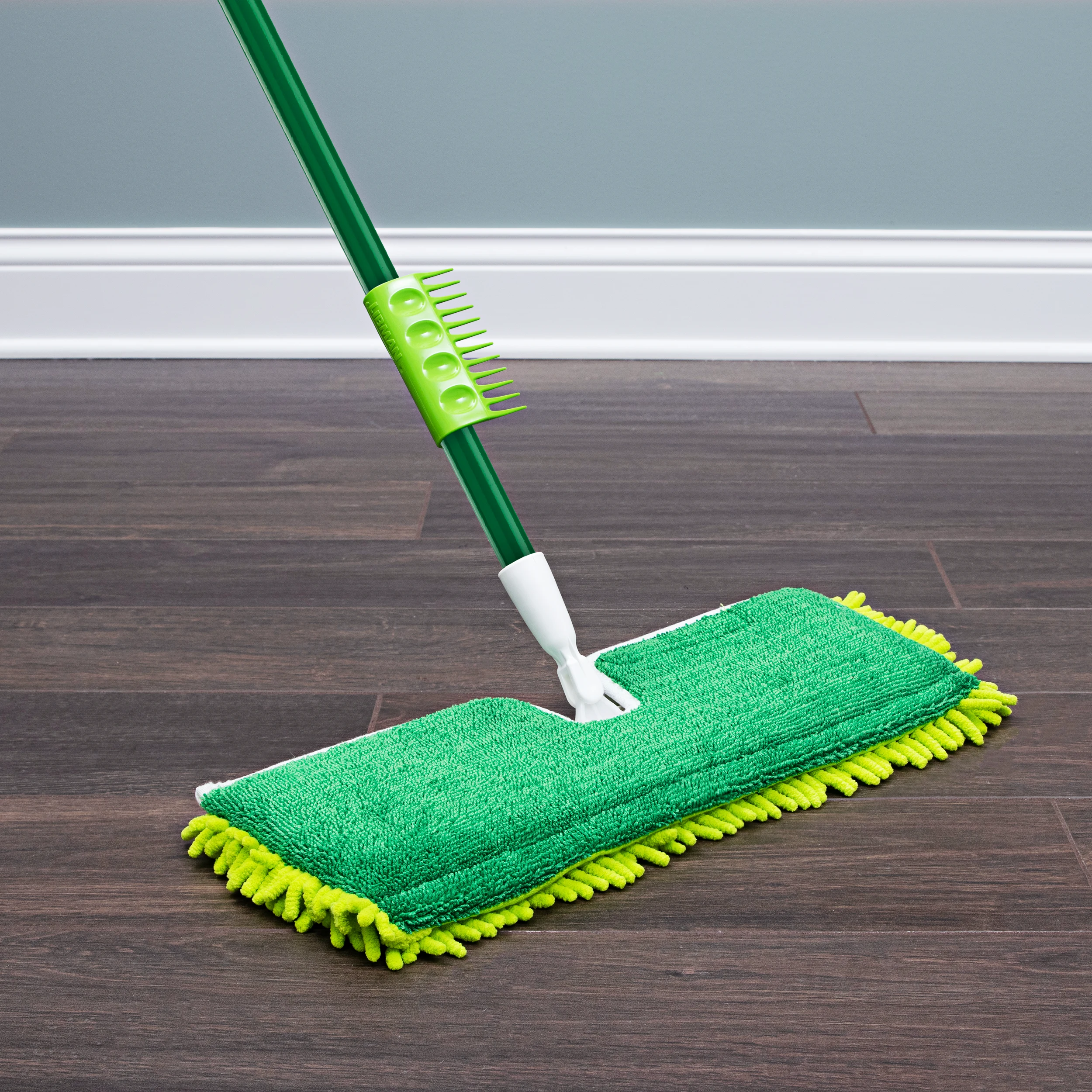 Whether you need to dust or mop, the 2-Sided Microfiber Mop will help you get the job done. When dusting your floors, use the microfiber finger side to pick up dust, dirt, and pet hair. The smooth side is perfect for mopping and washing dirt and grime away. The head itself is removable and machine-washable up to 100 times.