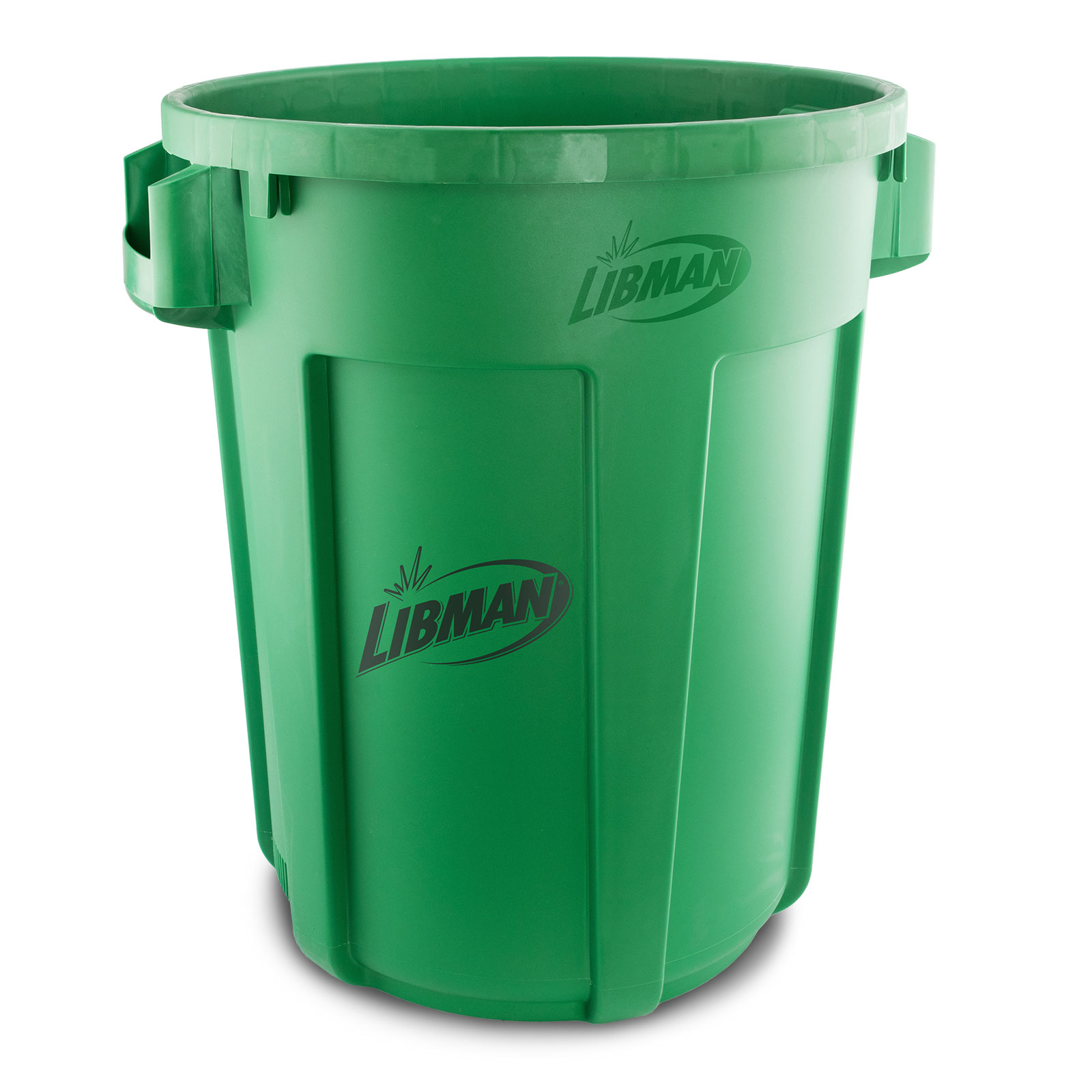 The 32-Gallon Trash Can with Lid is strong and durable, designed for use at home or the workplace. Made from linear low-density polyethylene, the can will not bend or warp and resists cracking in cold weather. The heavy-duty reinforced handles have been designed to resist bending or breaking. The color-matching snap-on rounded lid adds more capacity, while the integrated venting channels make it easy to lift out bags without getting stuck in the can. The reinforced, durable base withstands being dragged over even the roughest surfaces.
