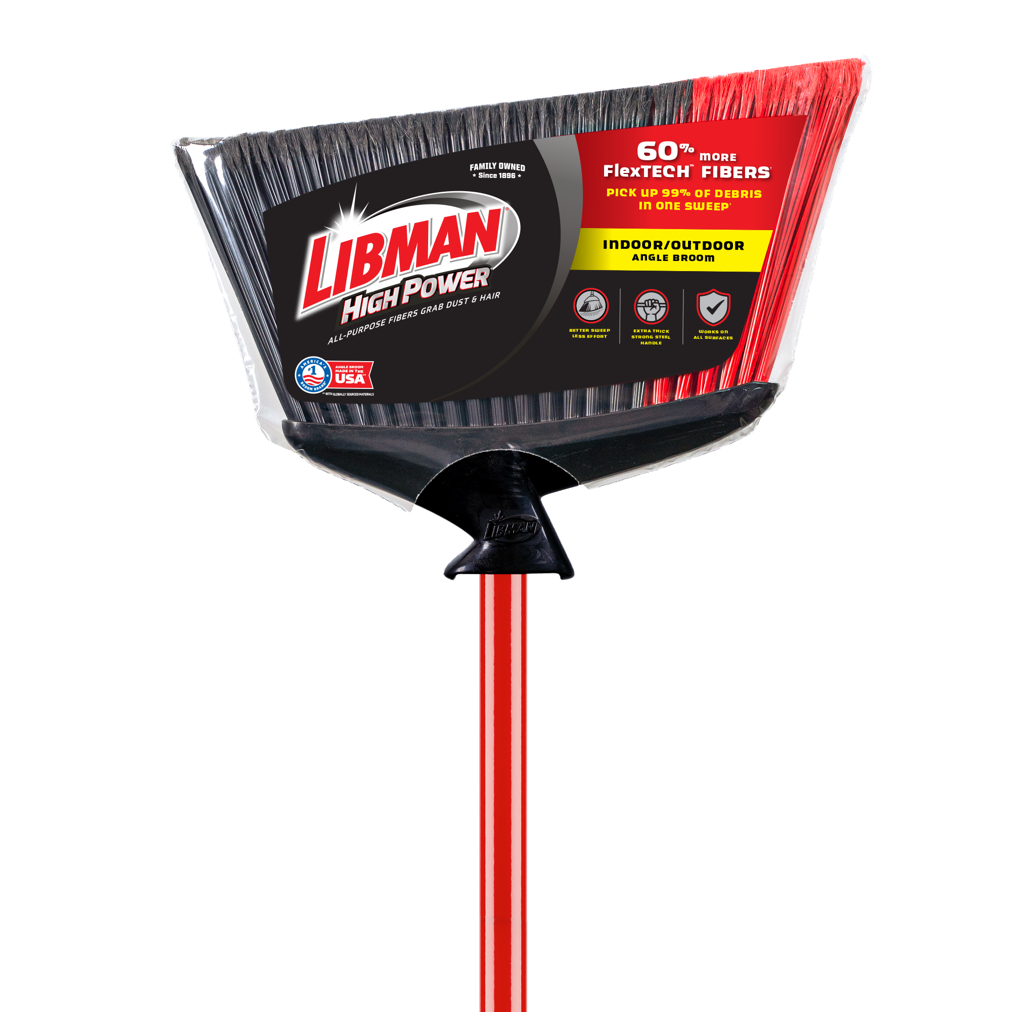 The Indoor/Outdoor Angle Broom is a patented extra-wide angle-style broom that’s great for heavy-duty applications. The broom’s 2 contrasting color bands contain fibers from recycled water bottles.