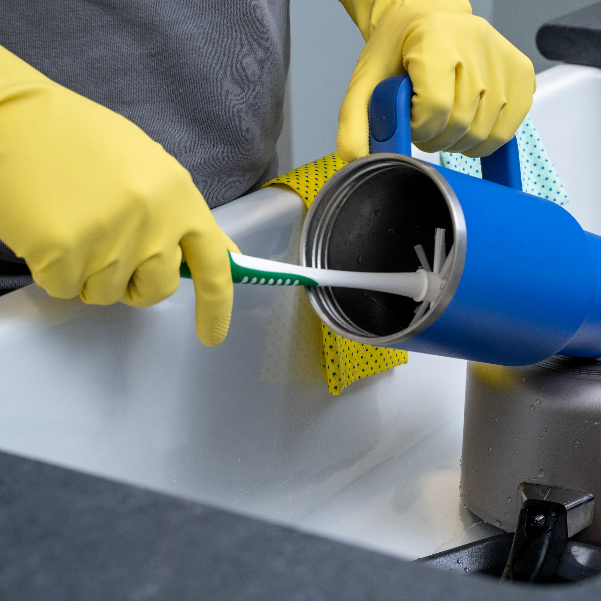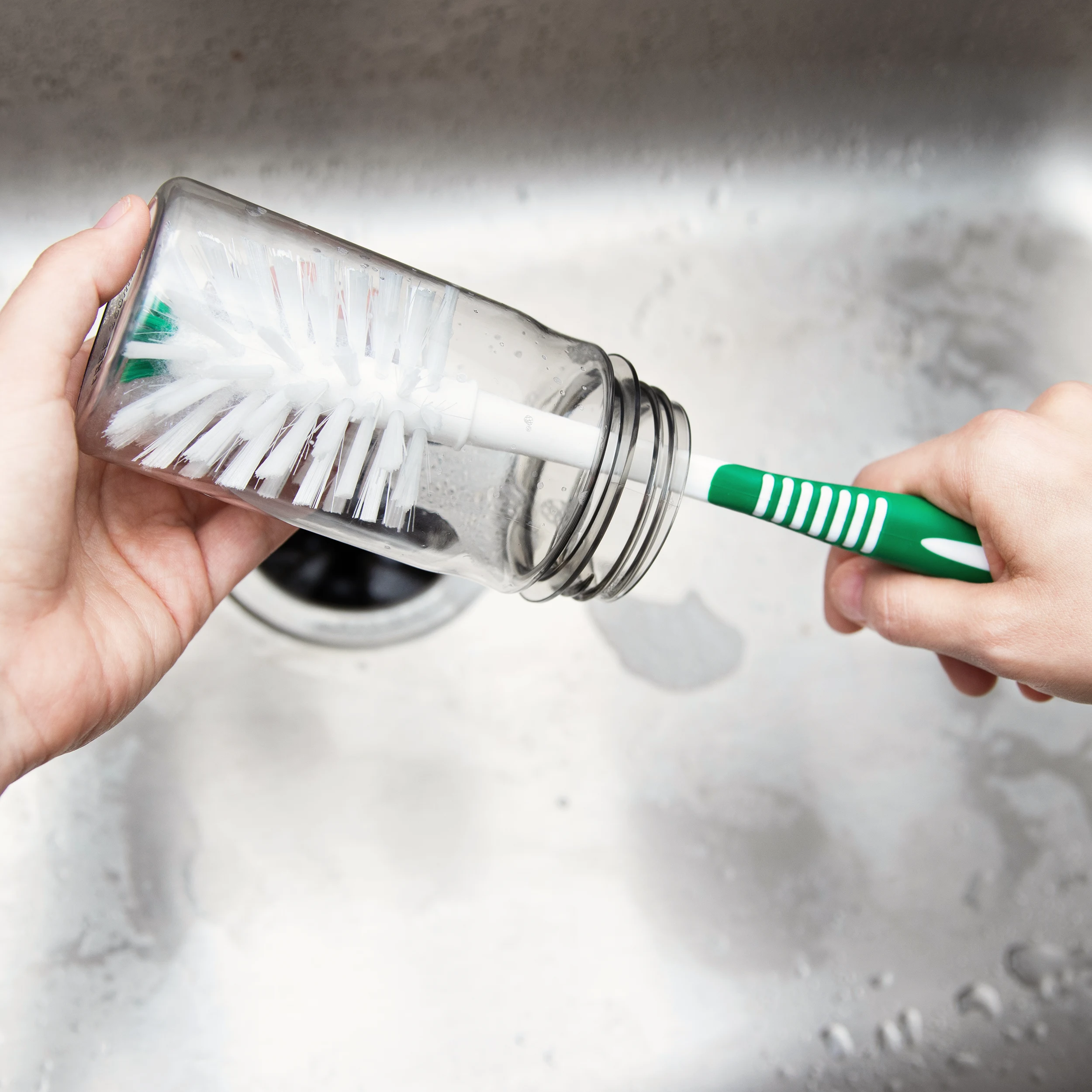 The Bottle Brush contains rounded bristles for a 360° clean of most drink containers. The soft-touch, flexible fibers are gentle on surfaces and hard on messes.