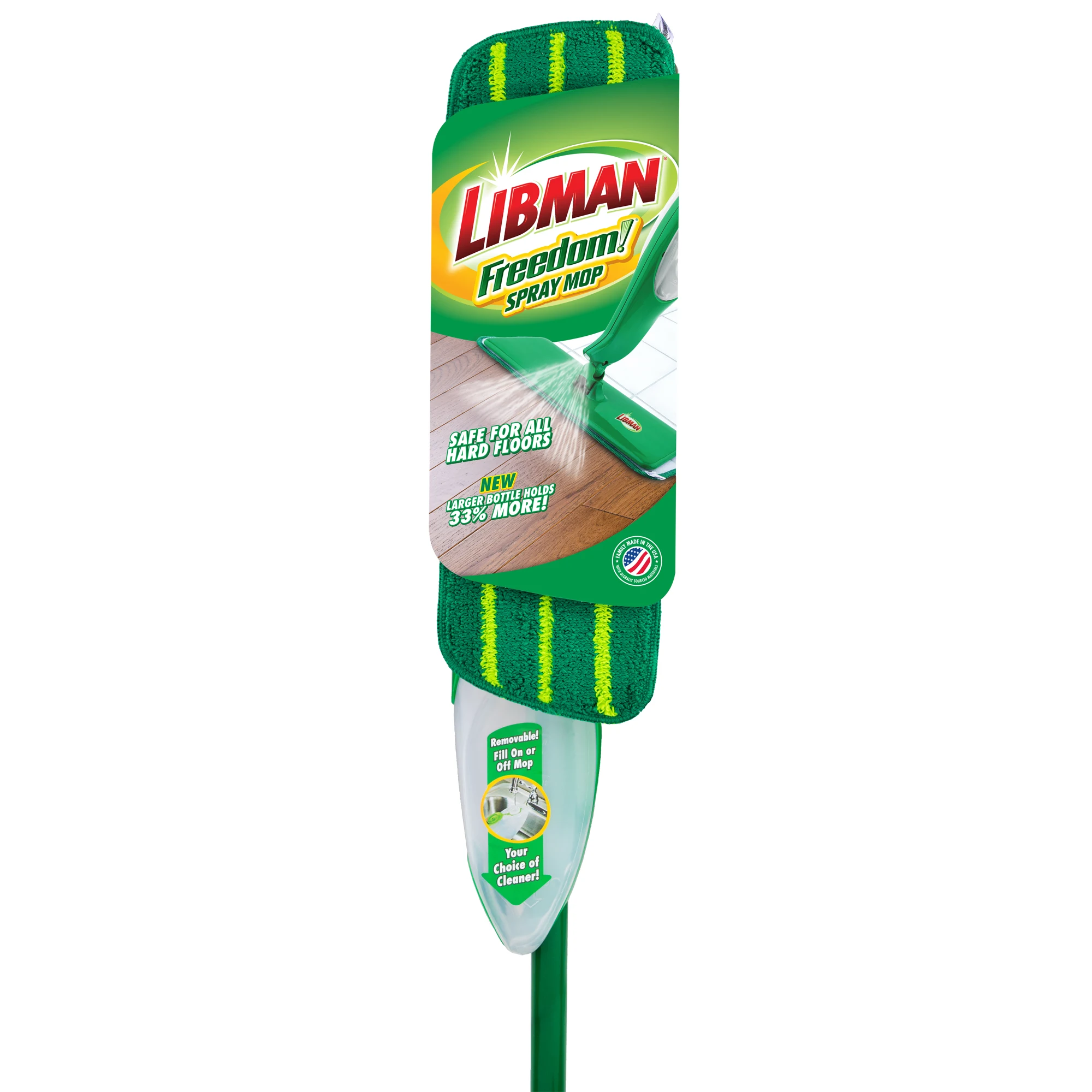 Set yourself free from wasteful disposable cleaning pads and expensive batteries with the Freedom® Spray Mop. Give yourself the freedom to use your own cleaning solution in the refillable tank. Excellent on wood, laminate, tile, marble, linoleum, stone, and more, the Freedom® Spray Mop uses a thick, absorbent machine washable microfiber pad to lift and trap dirt as you clean. You can reach into the toughest and tightest of corners with precise control, thanks to the 360° swivel neck. When you’re done cleaning, simply remove the mop head and toss it in the laundry to be cleaned up to 50 times.