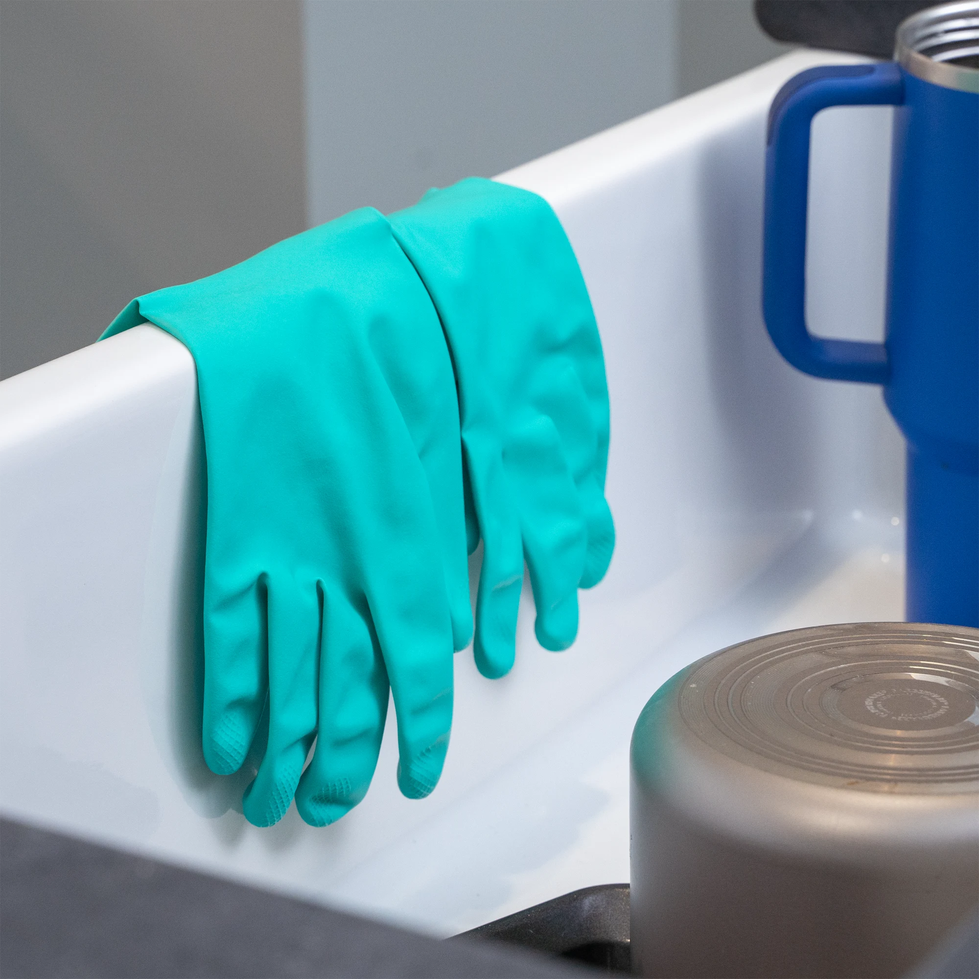 For those with allergies to latex who still need a quality glove to protect their hands, the Heavy-Duty Reusable Nitrile Gloves are an ideal solution. They provide excellent protection against chemicals like strong detergents, greases, oils, most solvents, and acids. The gloves feature textured surfaces for increased grip in wet and dry conditions. Best of all, they are more durable than natural rubber gloves.