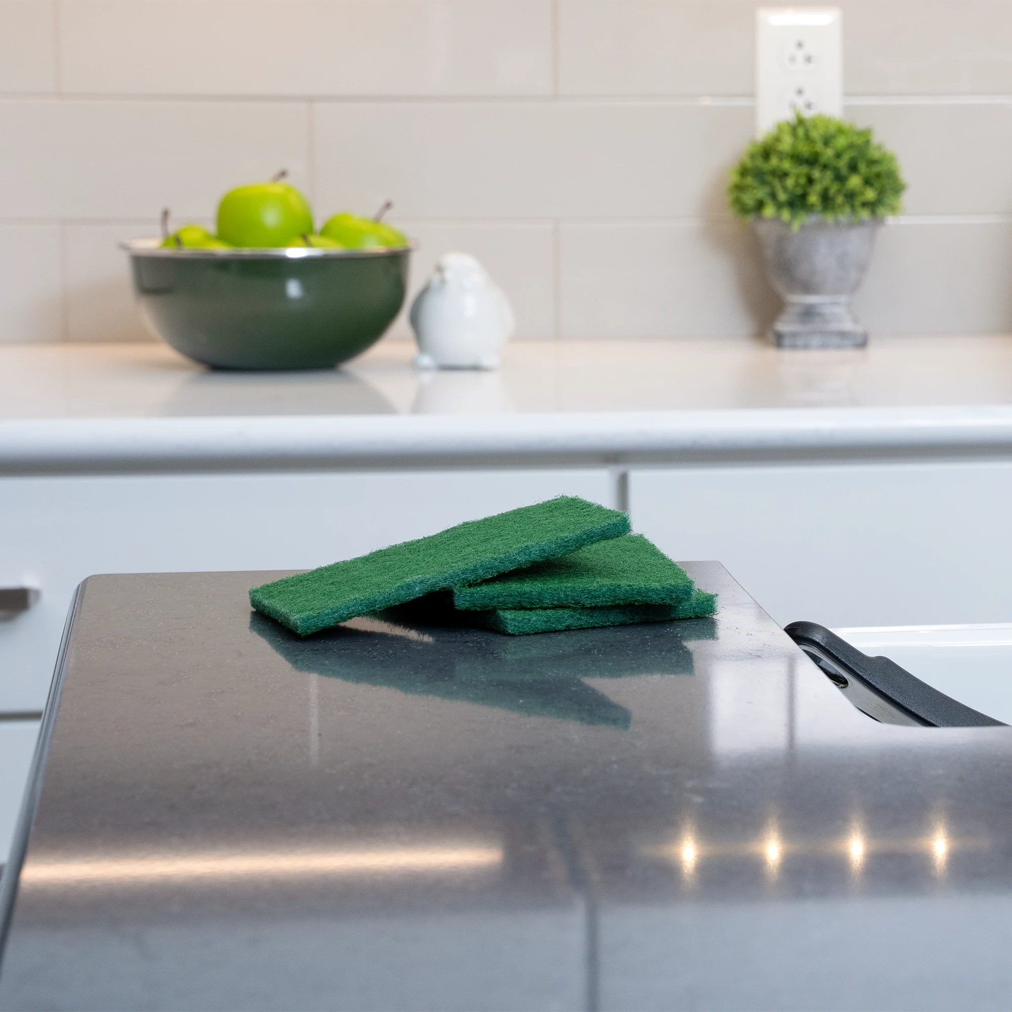 The Heavy Duty Scouring Pads include crimped and heat-set synthetic fibers with a large scrubbing surface for all household areas. The pad’s tightly-knitted design is great for tough messes.