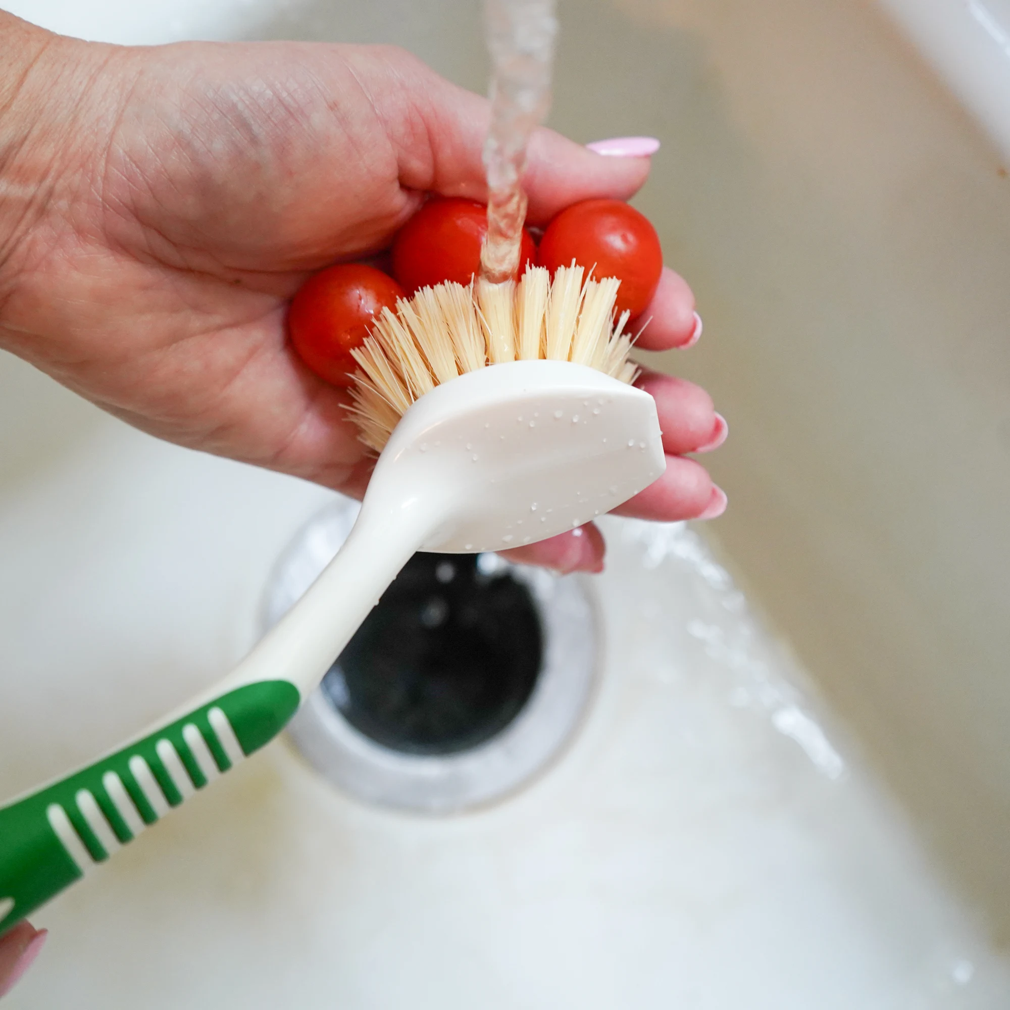 - Flexible, no-scratch natural bristles