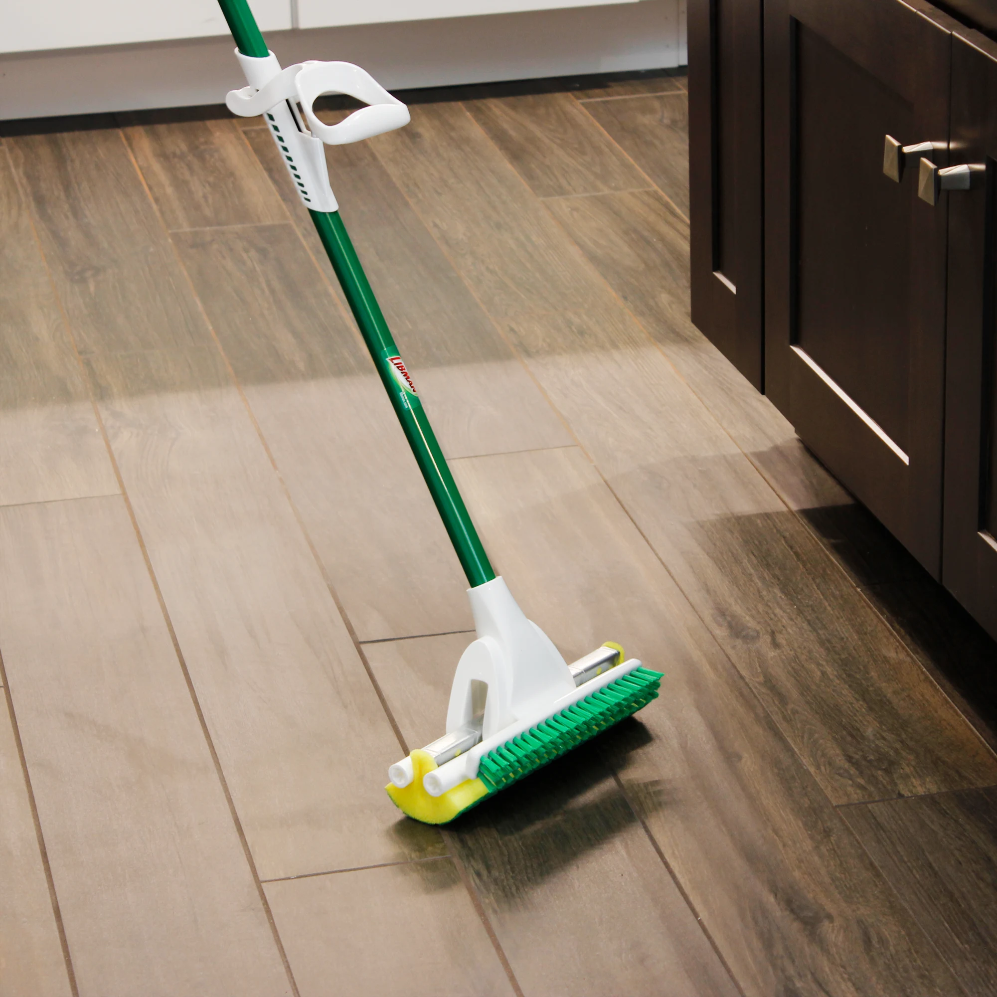 Squeeze every ounce of dirt and grime out of your floors with the Nitty Gritty® All-Surface Roller Mop. The HexaClean™ tear-resistant mop head absorbs 10x its weight and helps you lift dirt away from vinyl, linoleum, wood, laminate, marble, stone, or ceramic tile. The easy-wring handle makes getting dirty water out of the absorbent mop head a breeze without having to get your hands dirty. When you have harder-to-clean areas, the Nitty Gritty® All-Surface Roller Mop features a convenient brush that gets into even the toughest areas. When you need to scrub, mop, and wring, the Nitty Gritty® All-Surface Roller Mop should be your go-to mopping tool.