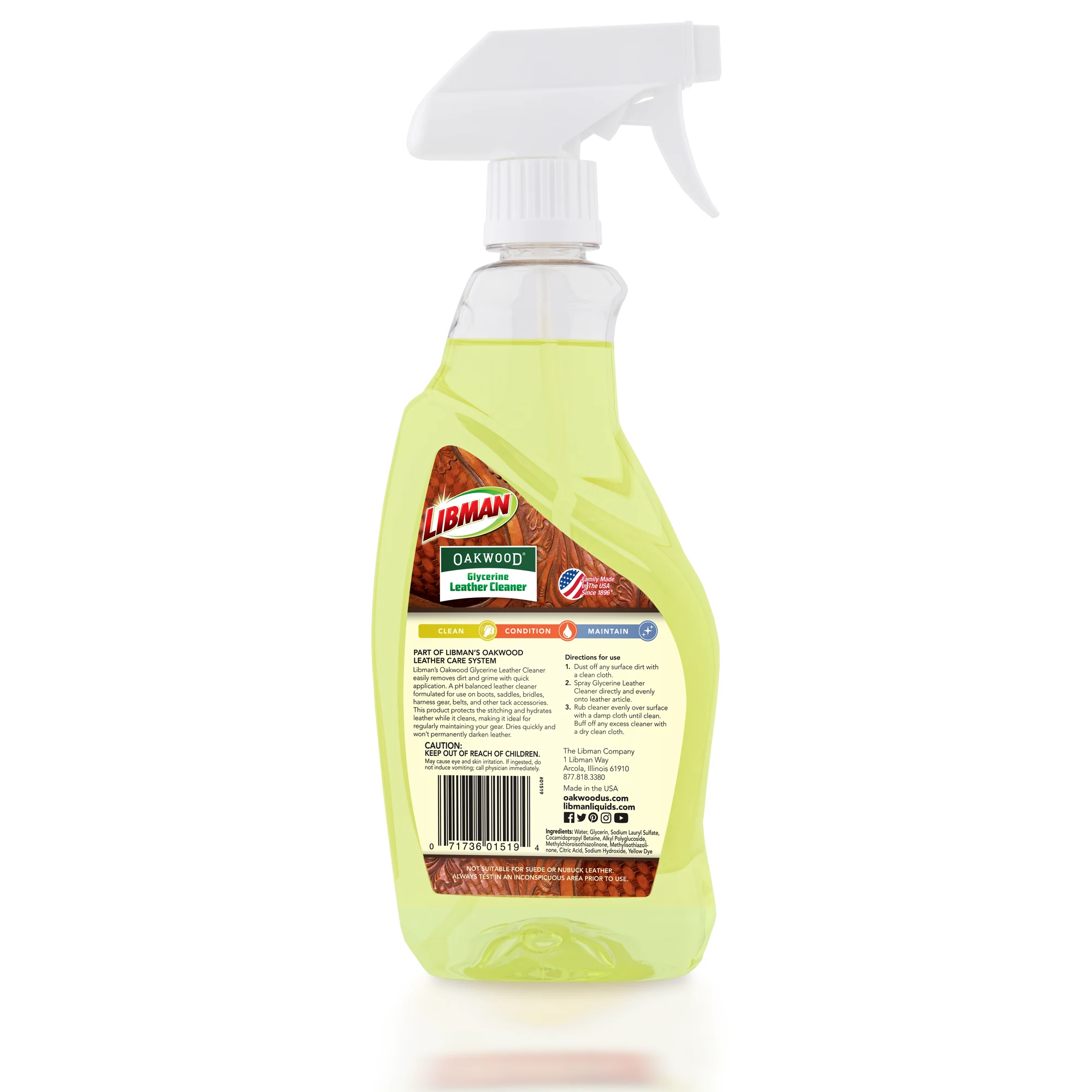Quickly clean those hard-to-reach areas of your saddle and leather riding gear with the Oakwood Glycerine Leather Cleaner. Perfect for removing everyday dirt and grime, this gentle yet powerful spray cleaner hydrates leather surfaces and protects leather stitching.