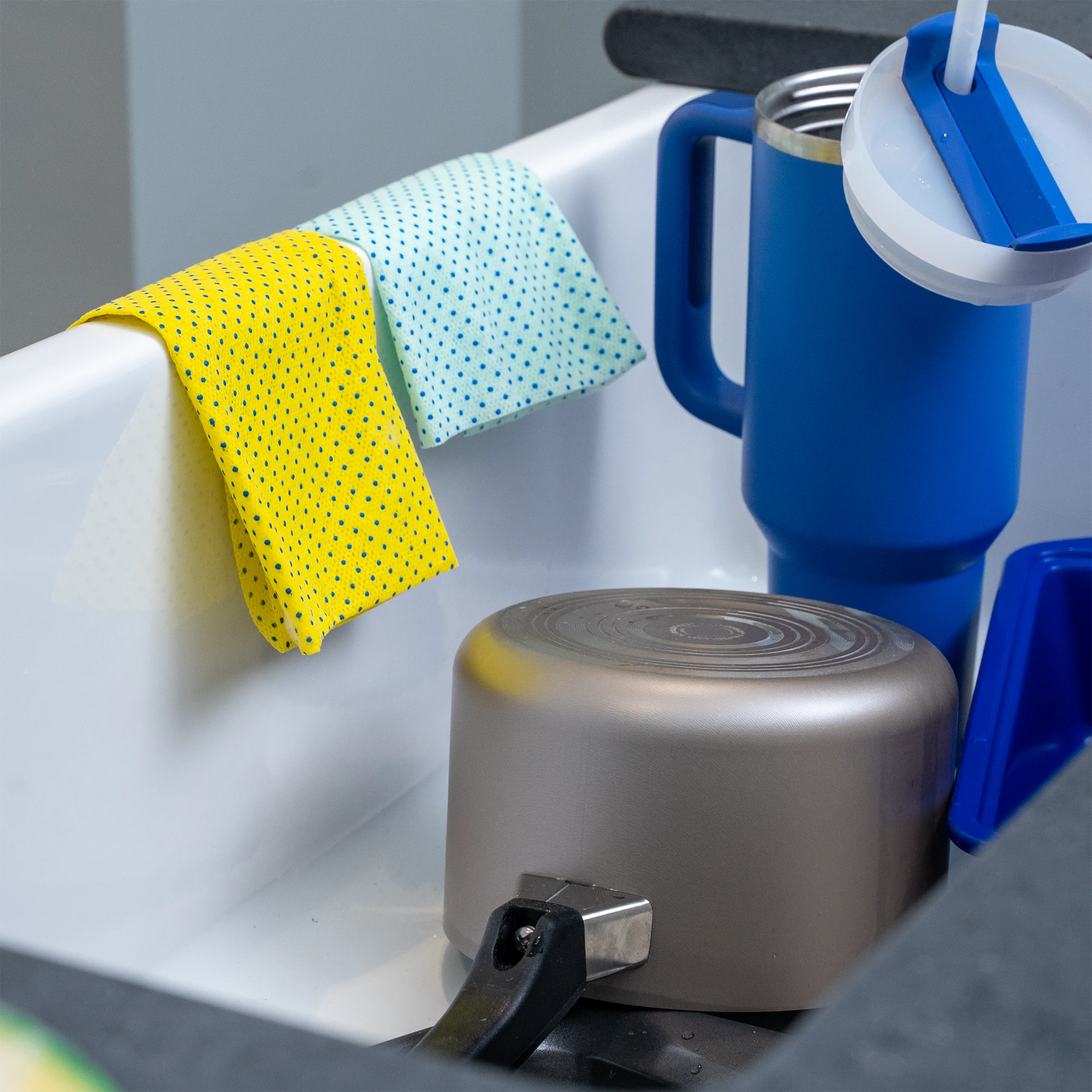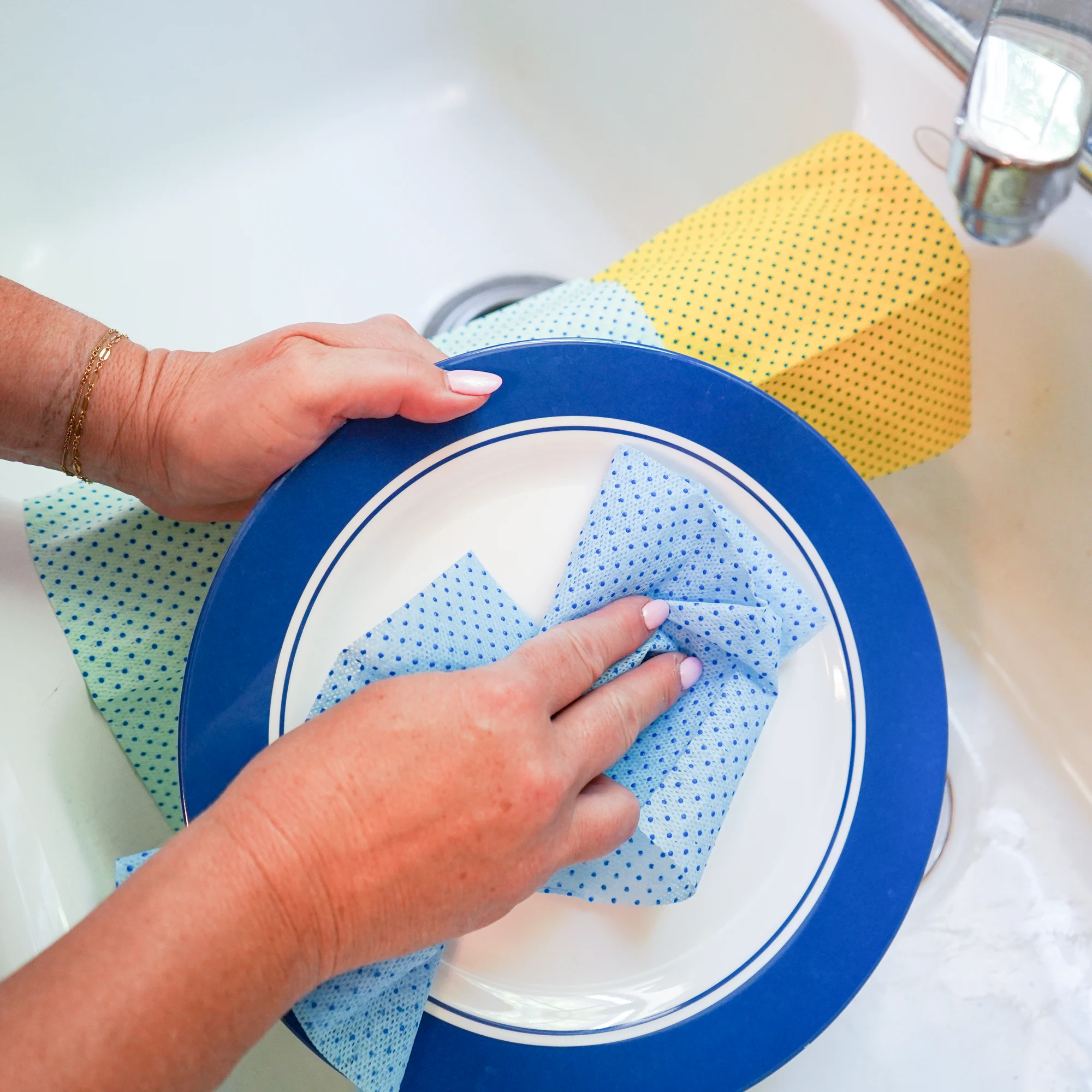 The power dots scrub stubborn stains and provide scratch-free cleaning. The wipes rinse clean to prevent stuck-on food particles.