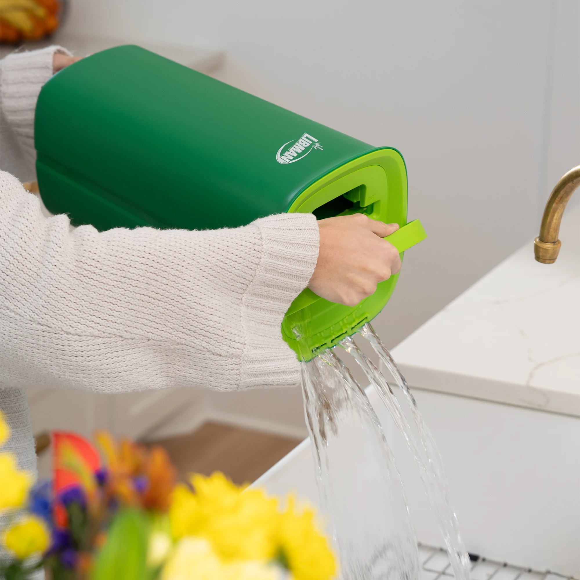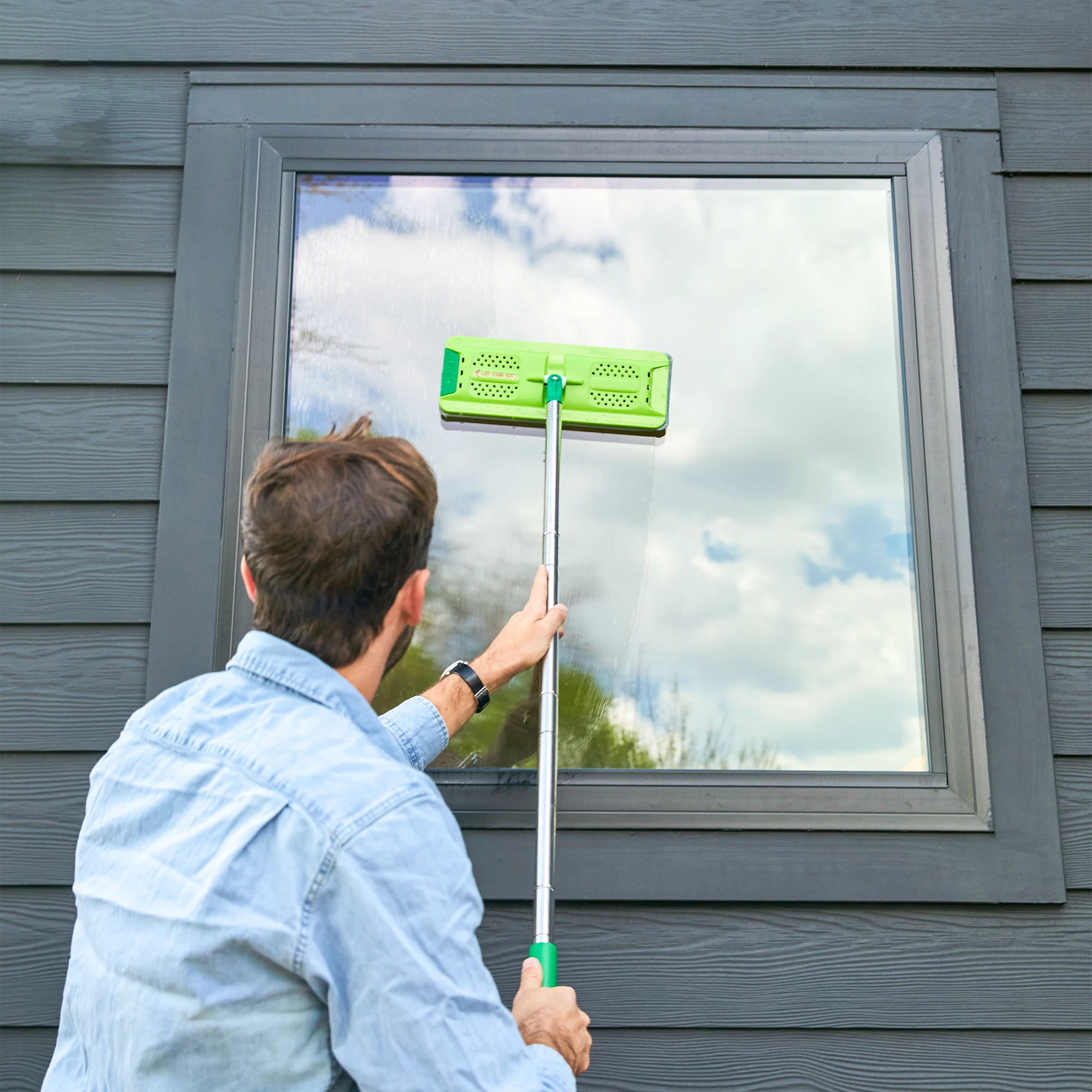 Add this versatile mop to your list of cleaning supplies! The mop bucket has a dual chamber system that works to remove water and dirt efficiently from the mop head. It is safe to use on all hard surfaces, including hardwood, vinyl, laminate, tile, linoleum, and more, but tough enough for larger messes. The Rinse ‘n Wring™ microfiber pads are machine-washable, and the system comes with one additional microfiber head (two pads total).