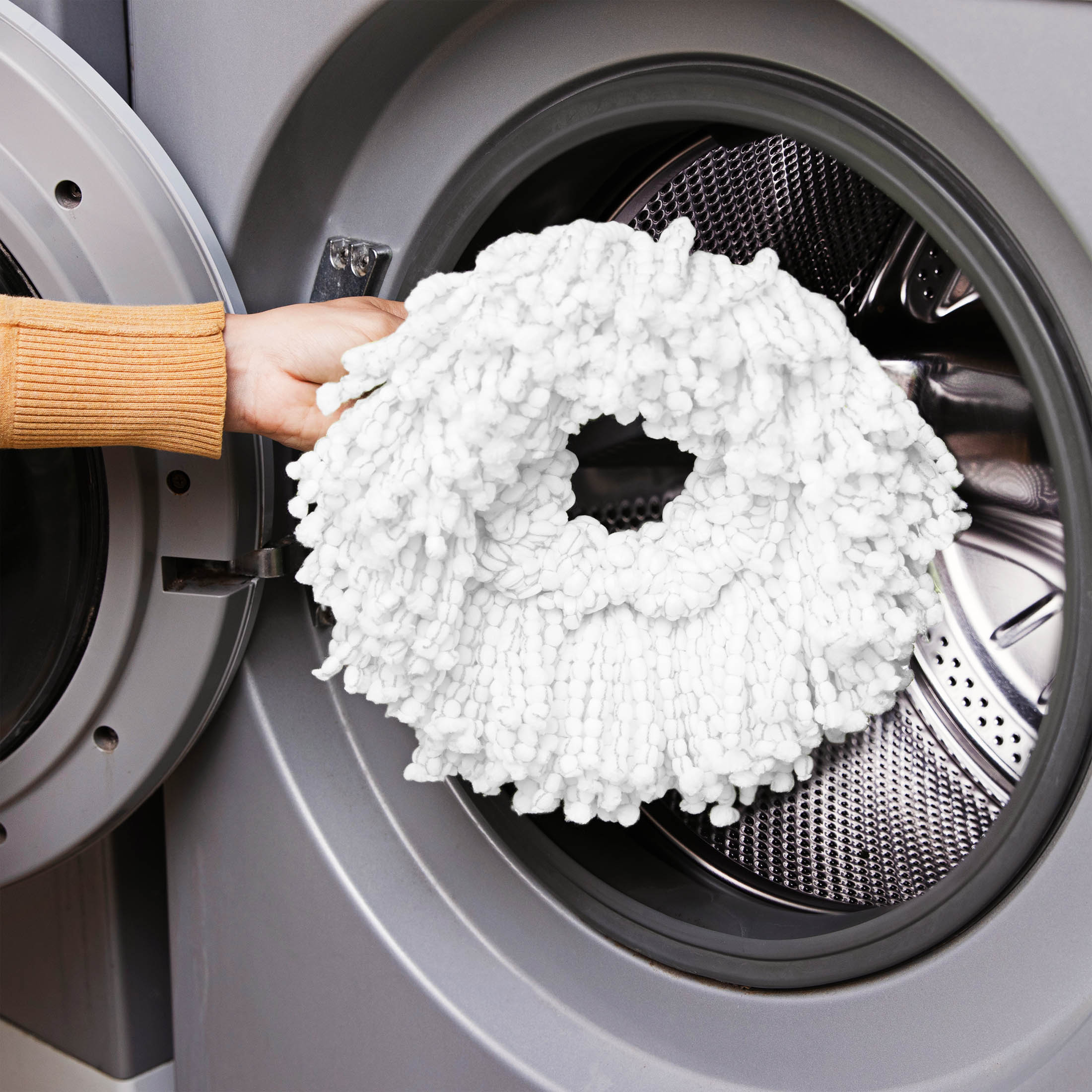 - Large, machine-washable microfiber mop head